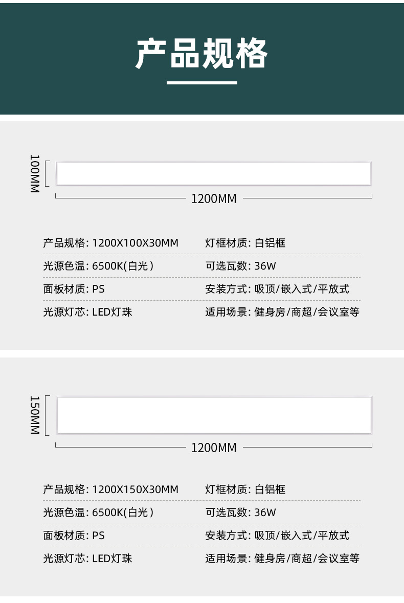 Modelo integrado 1200 * 150 * 30mm - 36w