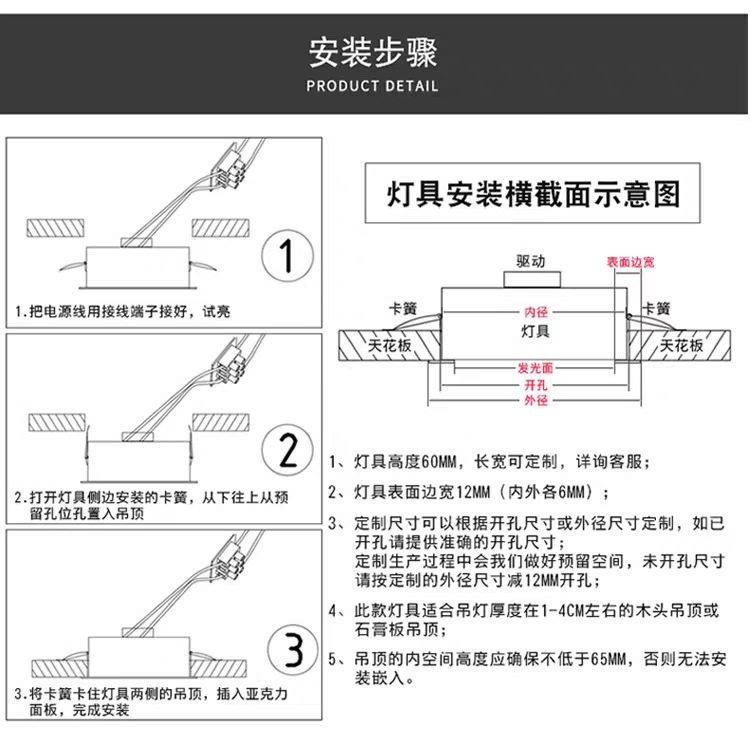 (montaje claro) superficie luminosa 12 cm de ancho y 1 metro de largo empalme personalizado sin costura (60w) luz blanca