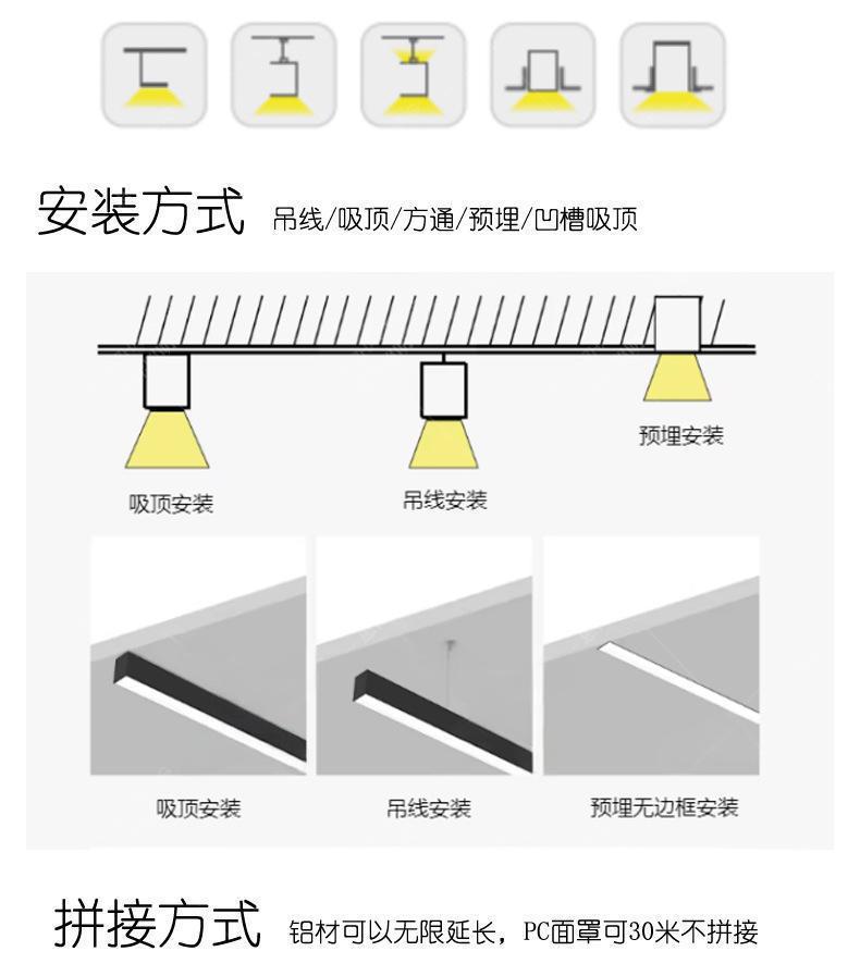 LED super brillante lámpara de oficina sin costura empalme lámpara de tira gimnasio centro comercial tienda modelado lámpara de cola personalizada