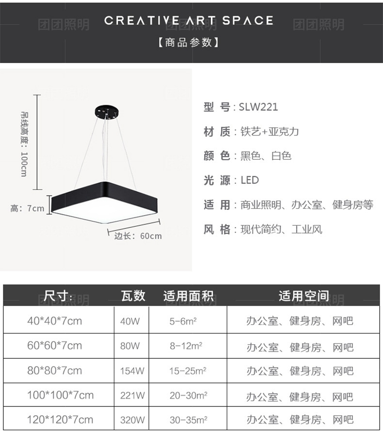 lámpara led cuadrada estudio sala de conferencias tienda pasillo de oficina iluminación industrial viento personalizado