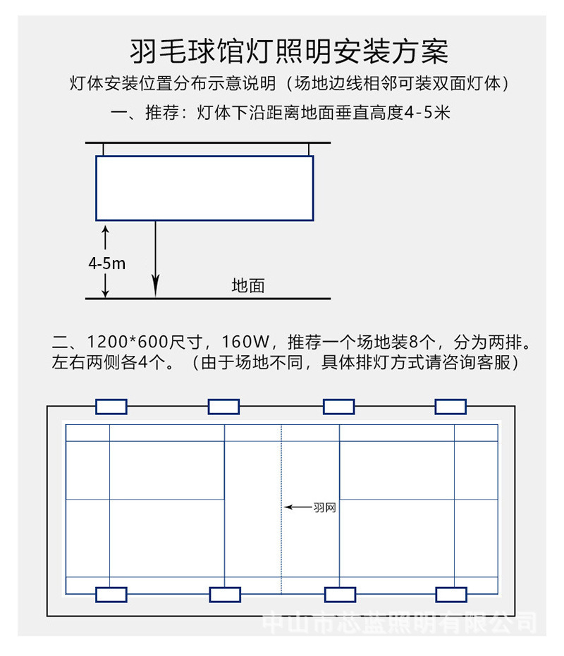 lámpara LED de bádminton unilateral y doble cara anti-deslumbramiento lámpara especial para estadio de baloncesto interior lámpara de estadio de tenis de mesa