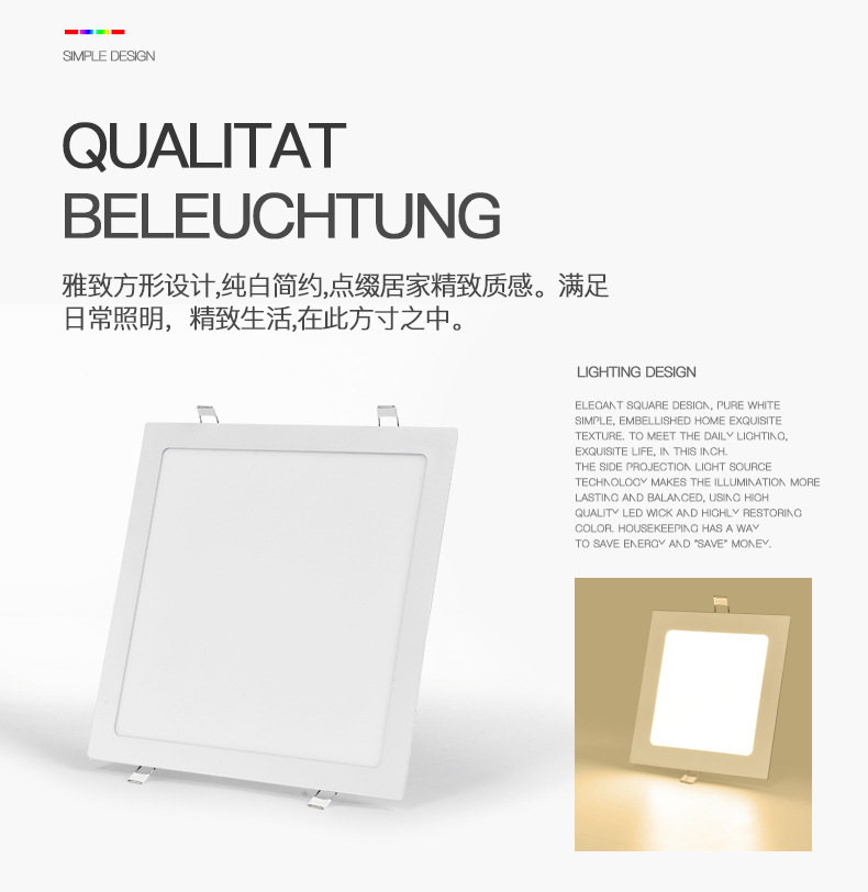 lámpara de panel LED cuadrada ultra delgada 9W 12W parrilla doméstica incrustada techo incrustado lámpara de agujero cuadrado