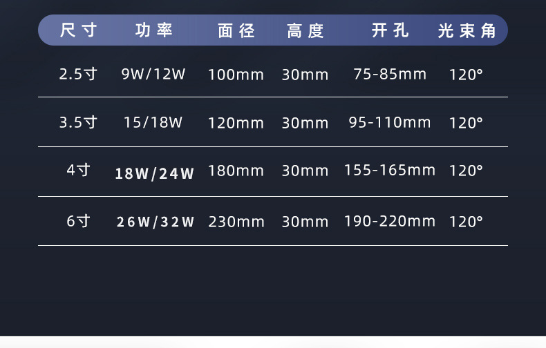 Luz blanca de 6 pulgadas 26w [agujero abierto 15,5 - 16,5 cm]