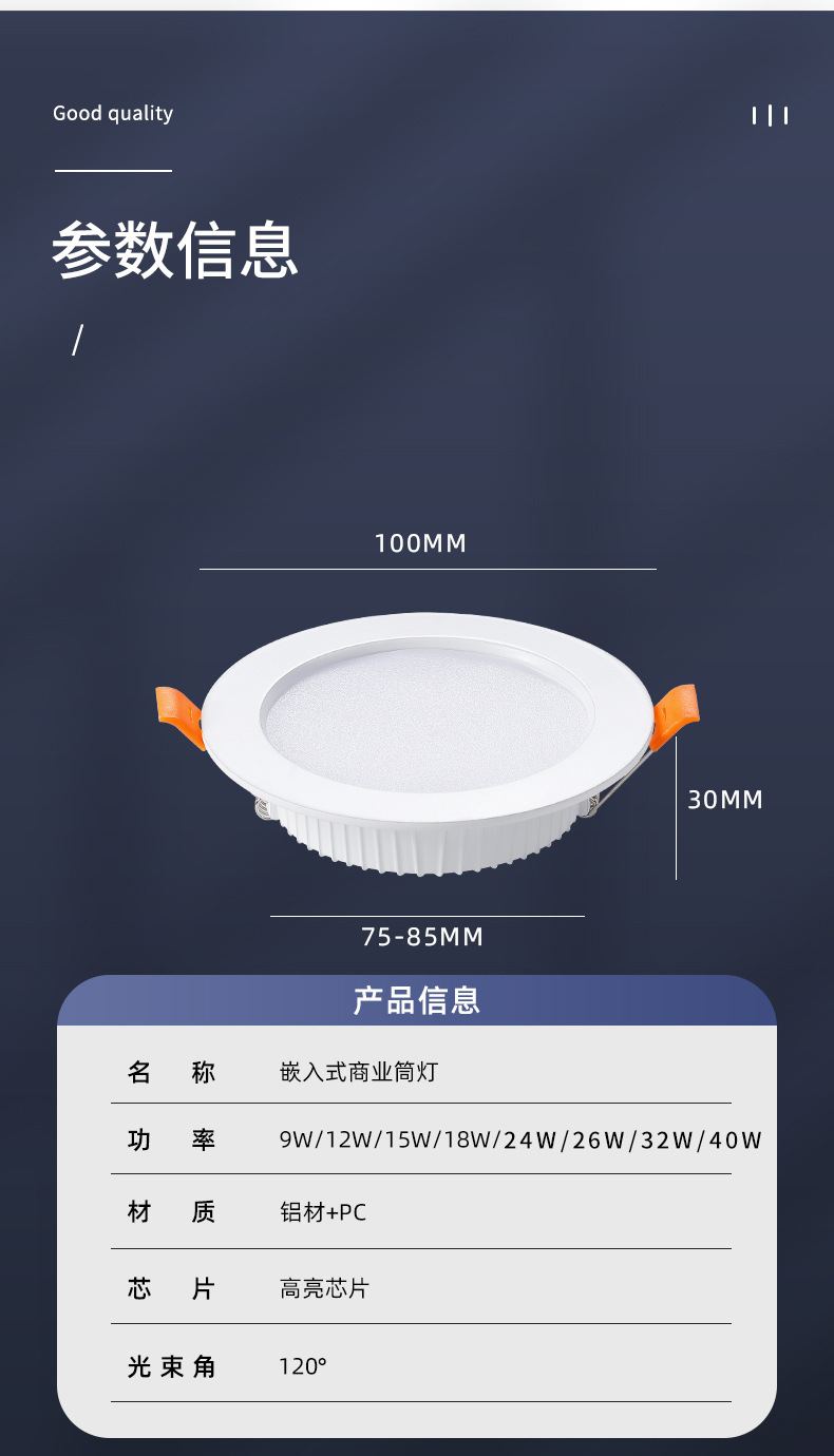 Downlight LED incrustado de alta potencia tienda comercial de 6 pulgadas 8 pulgadas 40 agujeros lámpara 50W lámpara de barril lámpara de techo lámpara de agujero