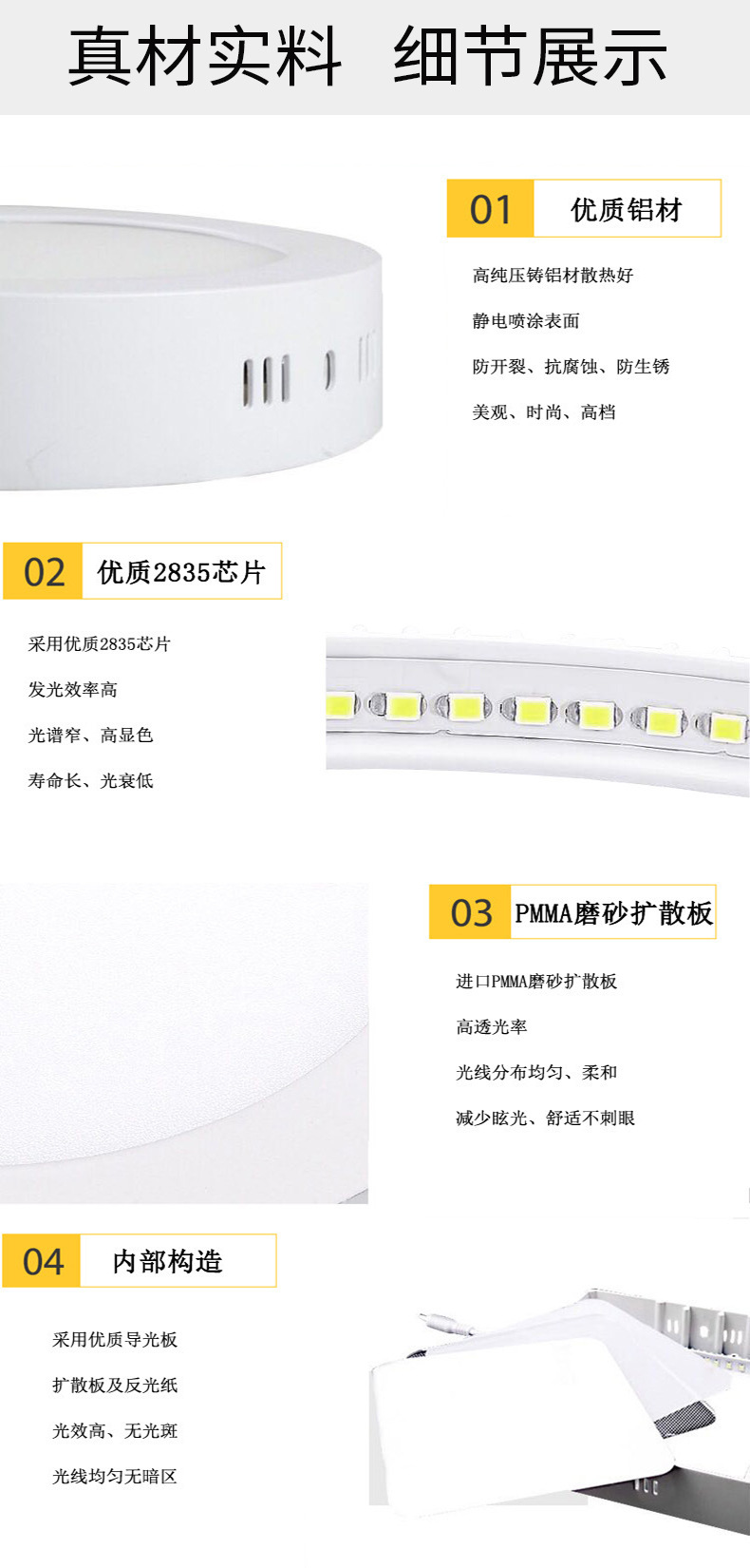 Led Downlight sin agujero de apertura dormitorio techo ultra delgado cocina baño pasillo balcón redondo lámpara de panel cuadrado