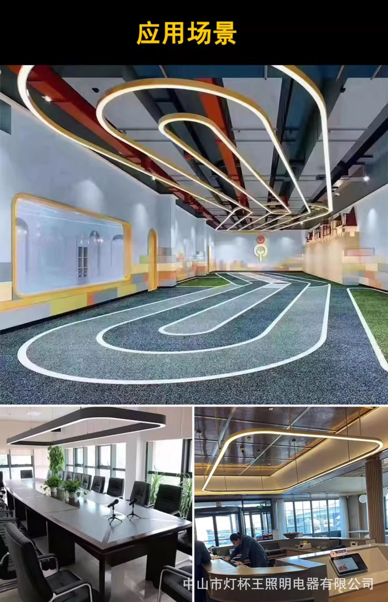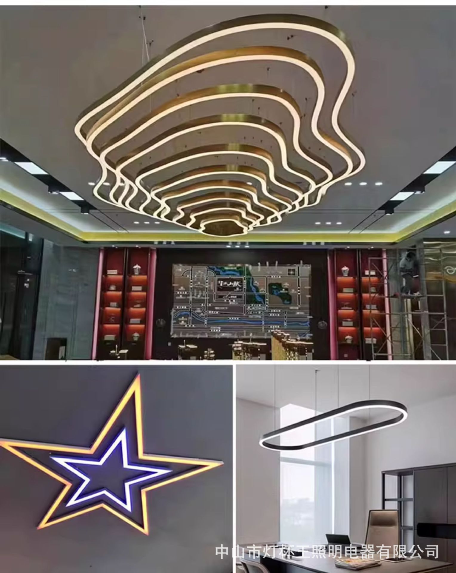 LED oval lámpara de arco circular sala de conferencias lámpara de lámpara de oficina rectangular moderna sala de exposiciones iluminación simple del centro comercial