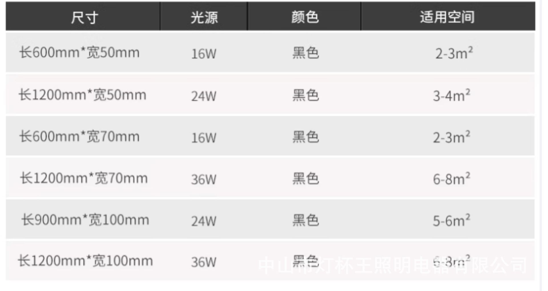 1800x50x40mm marco negro luz blanca 36w aluminio
