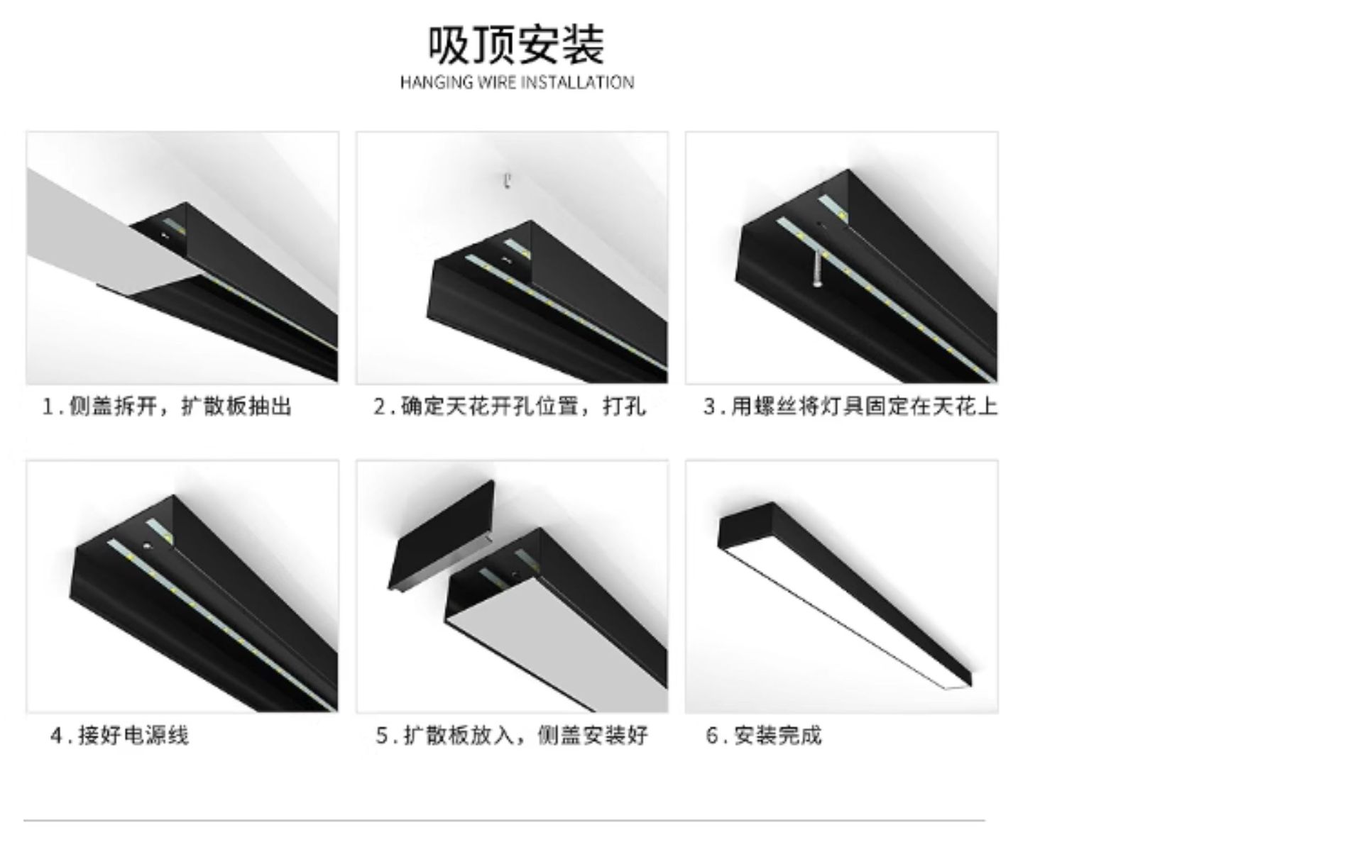 1500x50x40mm marco negro luz blanca 30w aluminio
