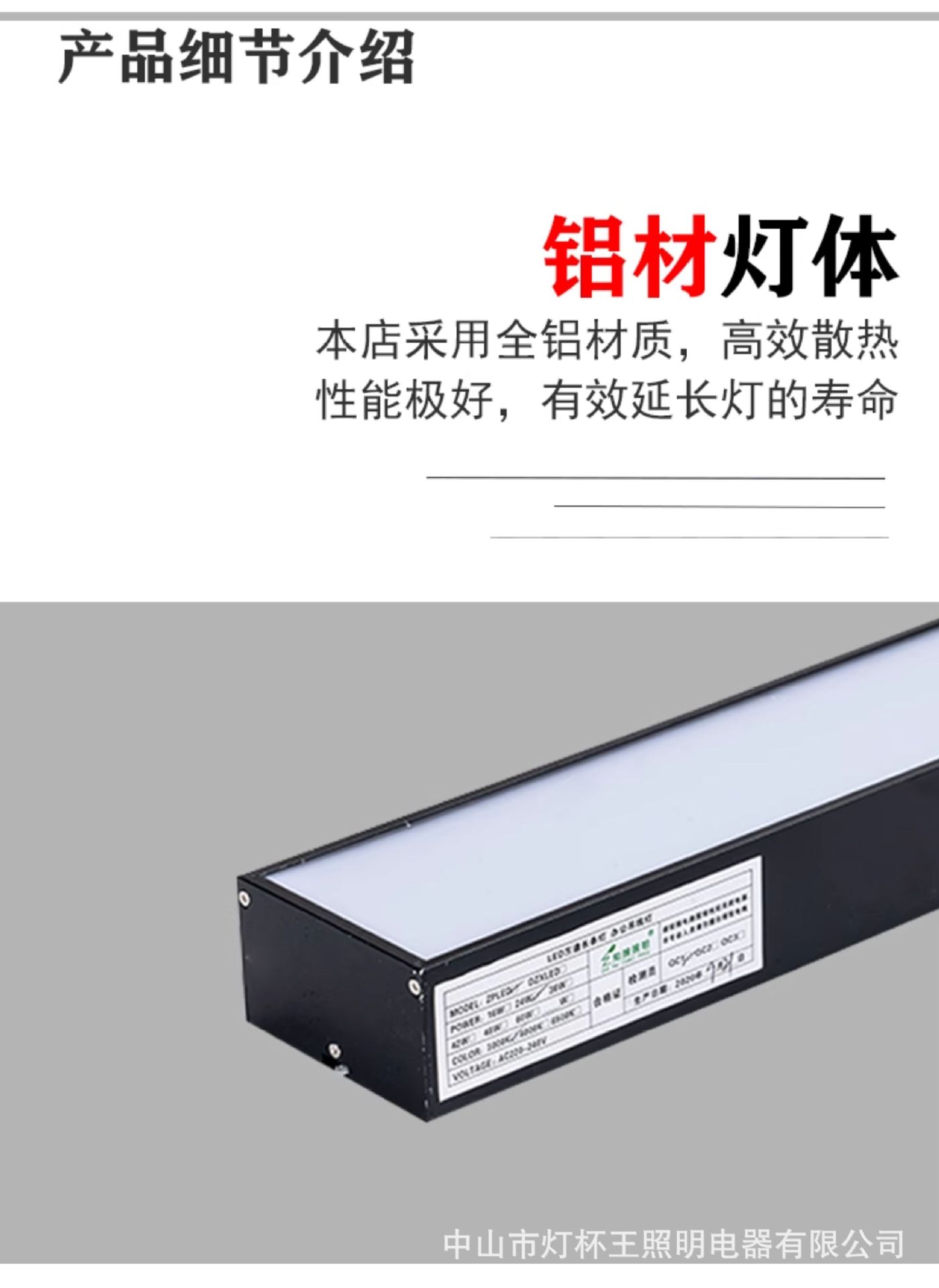 1500x70x40mm madera blanca 30w aluminio