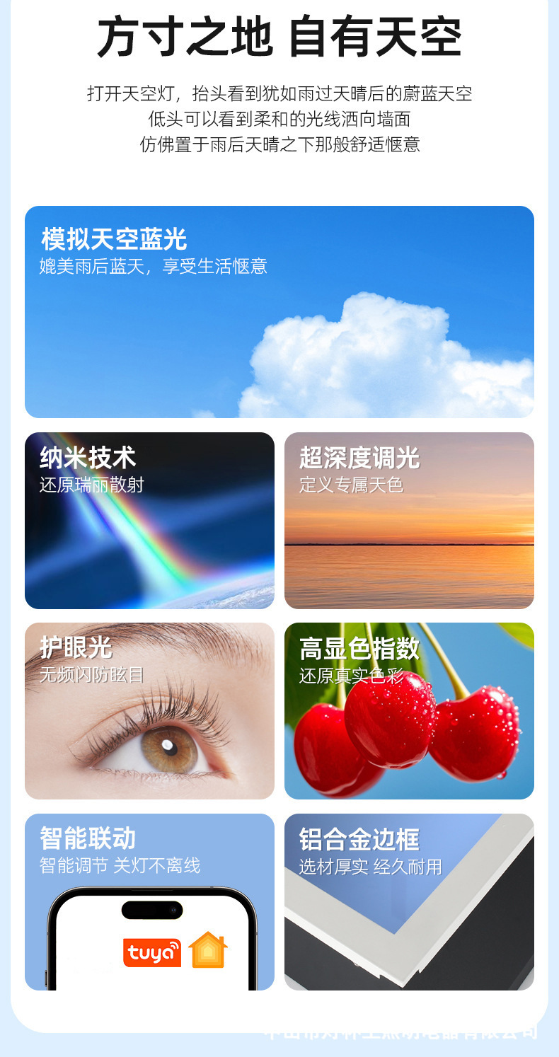 Lámpara de cielo claro incrustada luz azul ultra delgada luz natural de cielo azul graffiti inteligente techo sala de estar lámpara de dormitorio