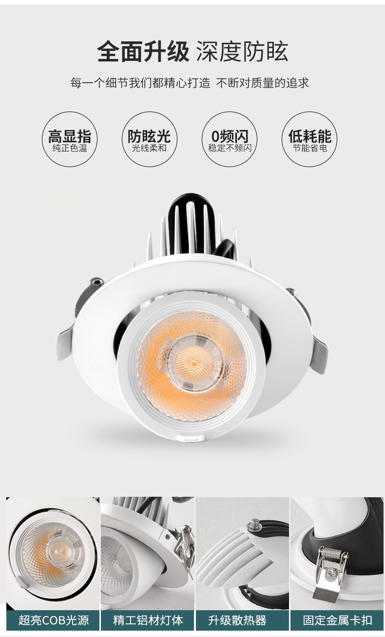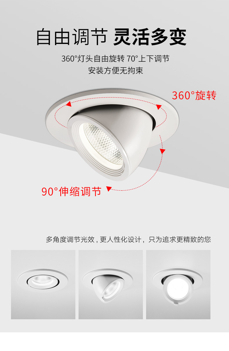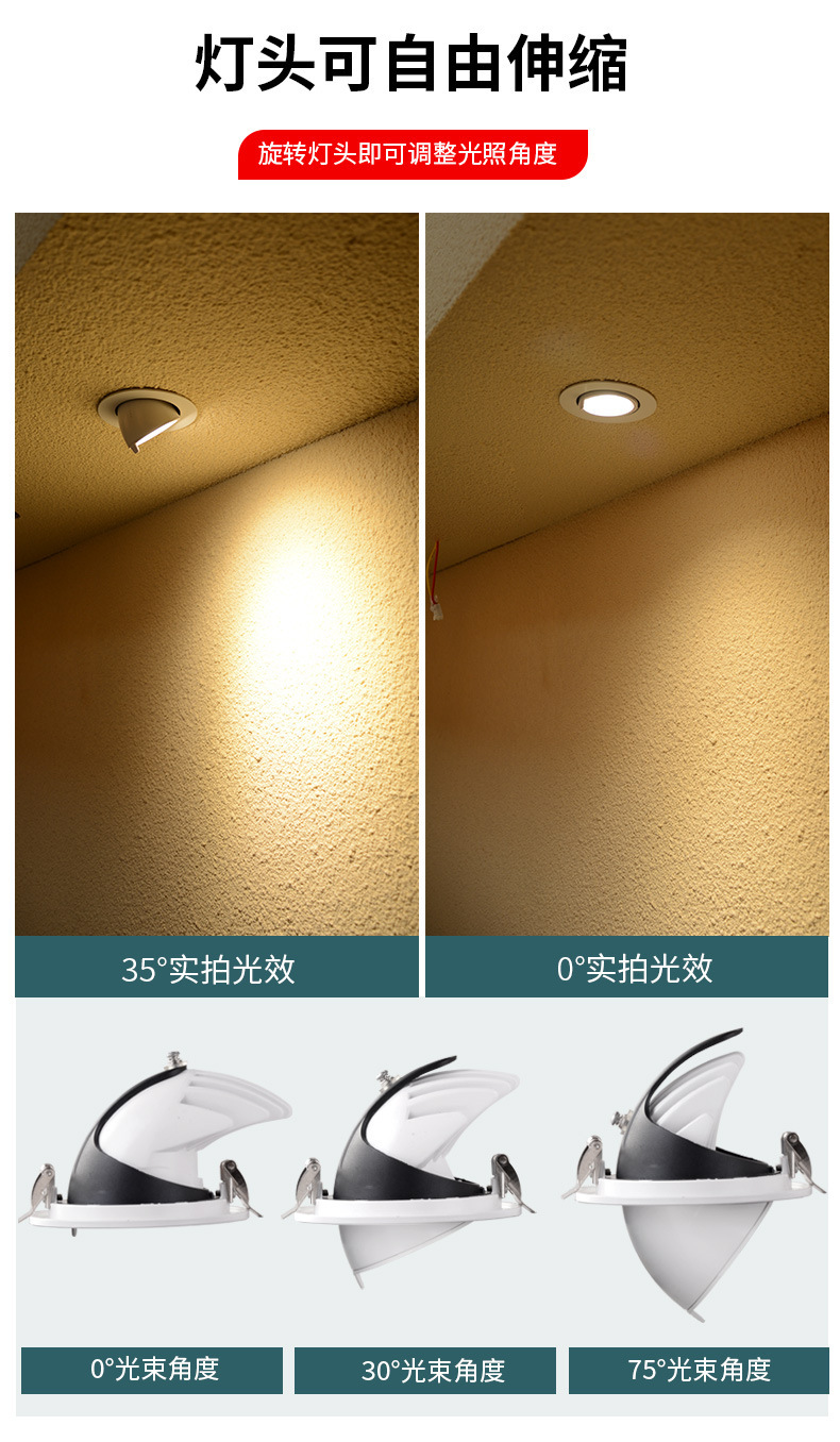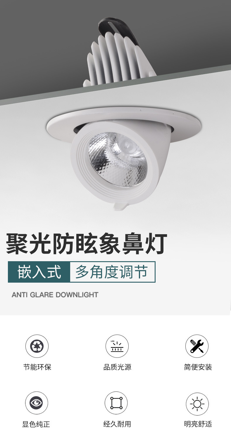 Lámpara de trompa de elef COB lanterna LED lava pared incrustada tienda de ropa comercial ángulo ajustable anti-deslumbrante luz de techo