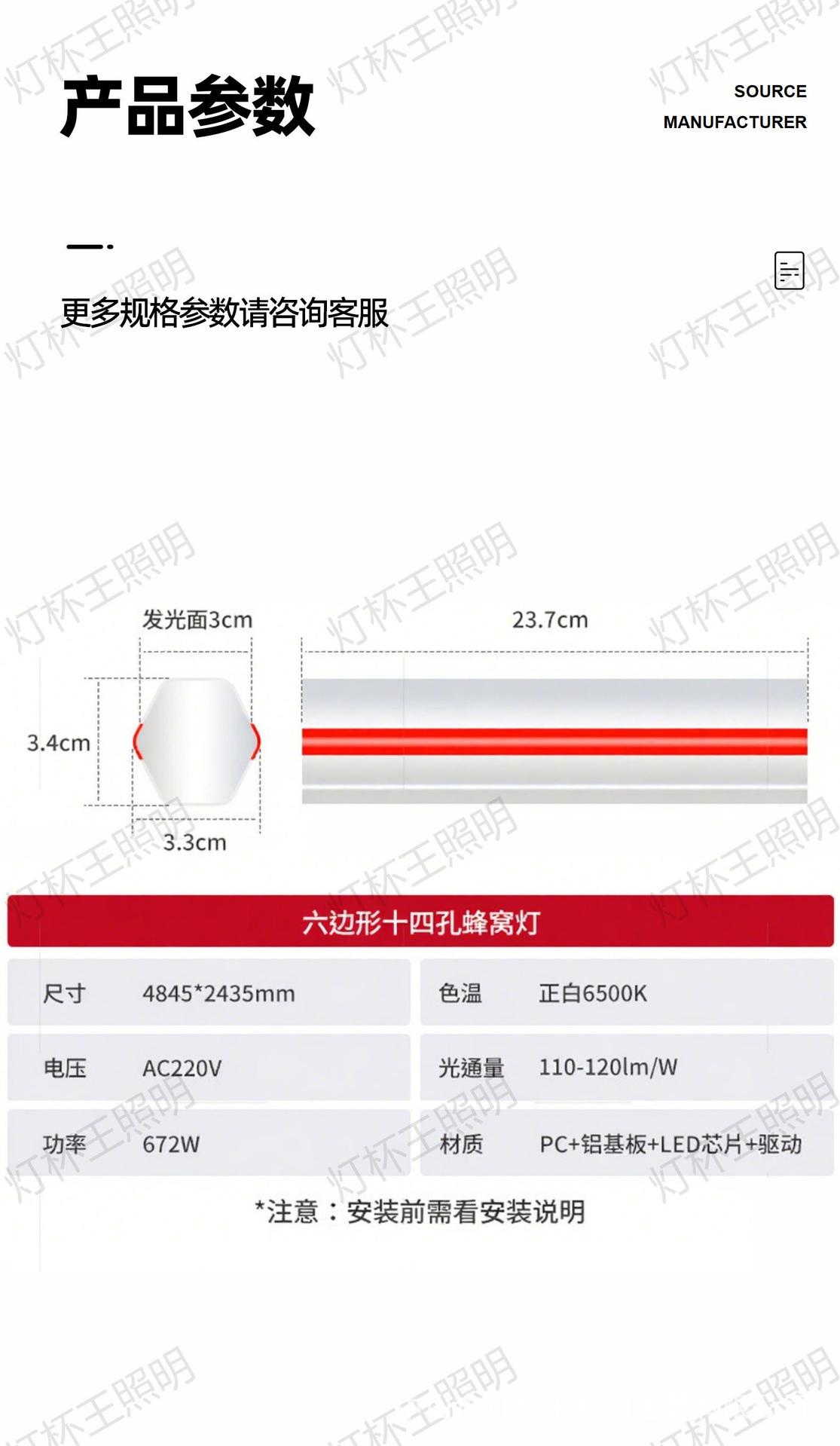 Transfronterizo nueva lámpara de panal taller de automóviles 220V lavado de automóviles panal techo lámpara fluorescente de automóviles de belleza lámpara de estación de trabajo