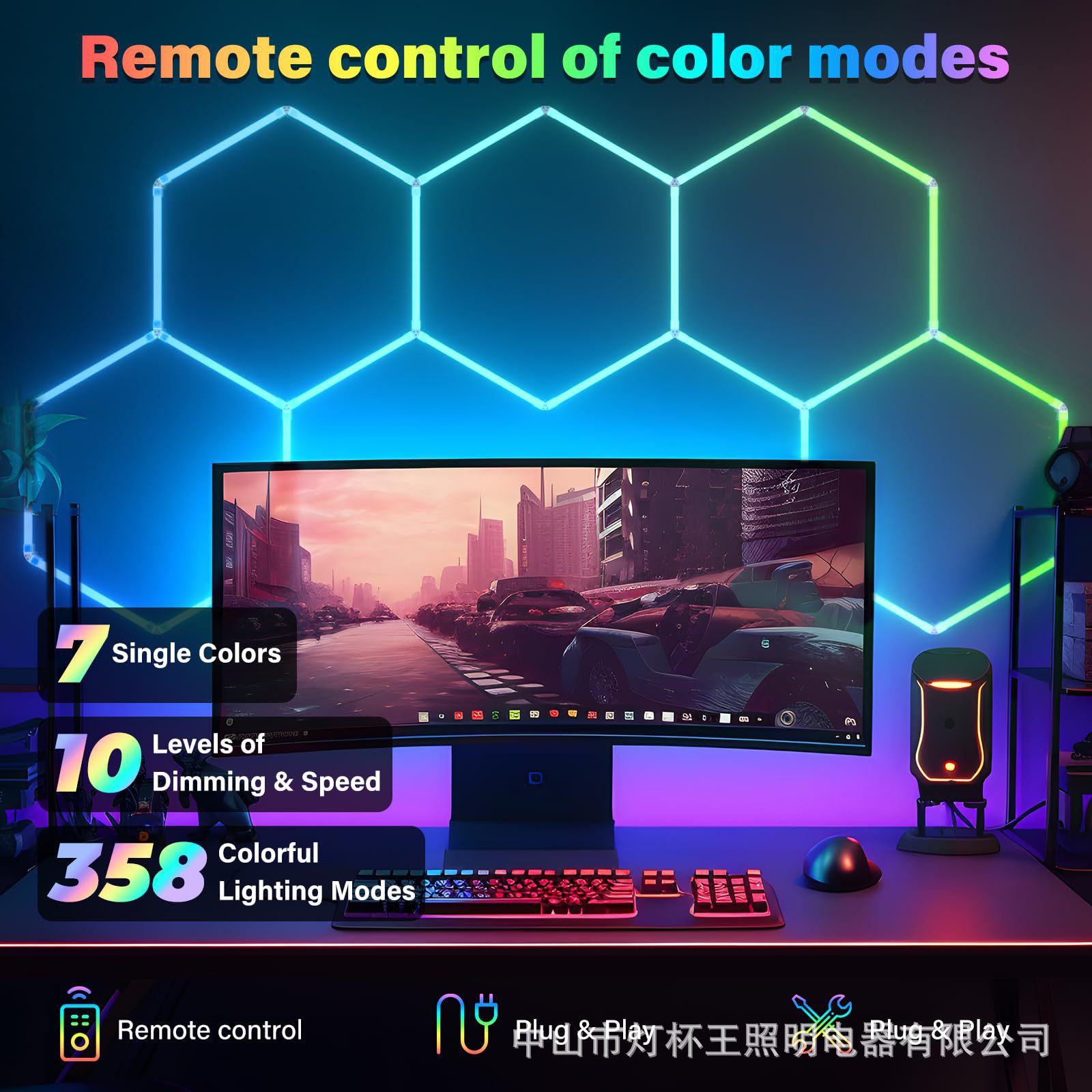 Copa de lámparas rey comercio exterior estilo RGB atmósfera de luces deportivas sala KTV gimnasio bar música ritmo decida panal lámpara de pared