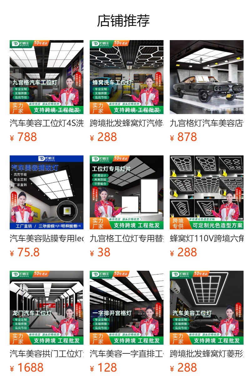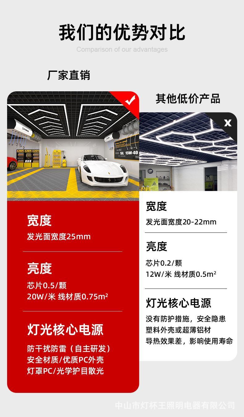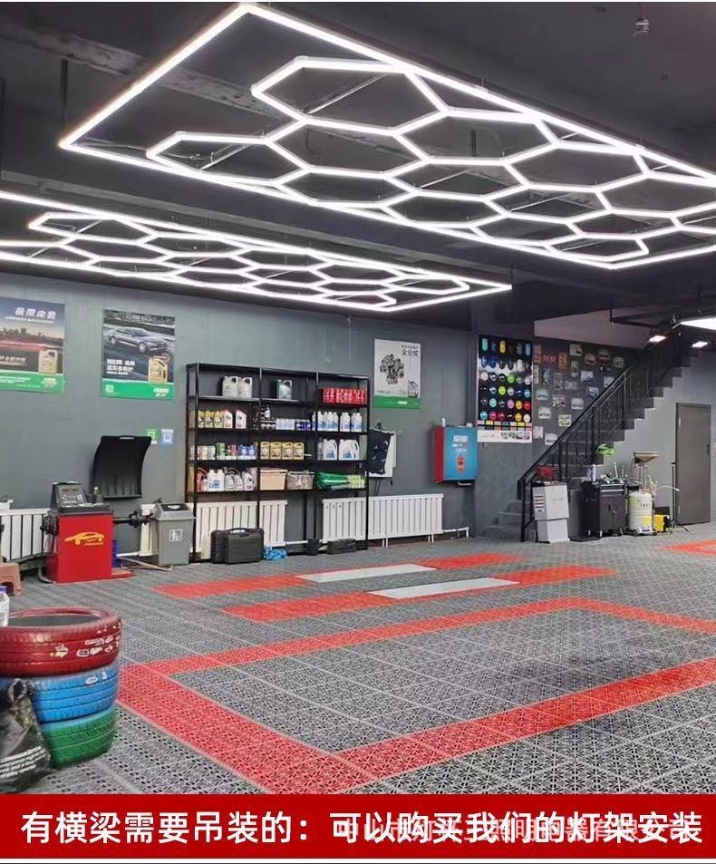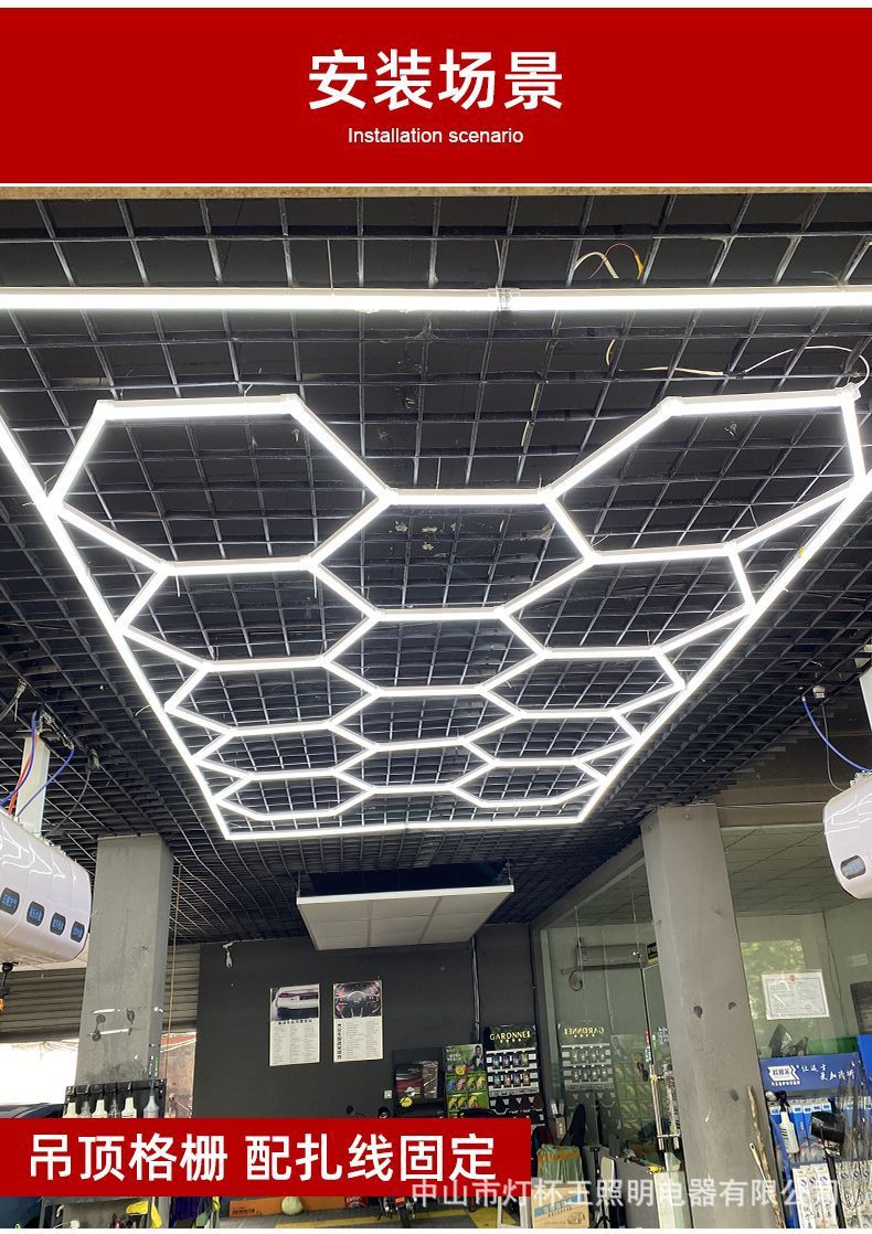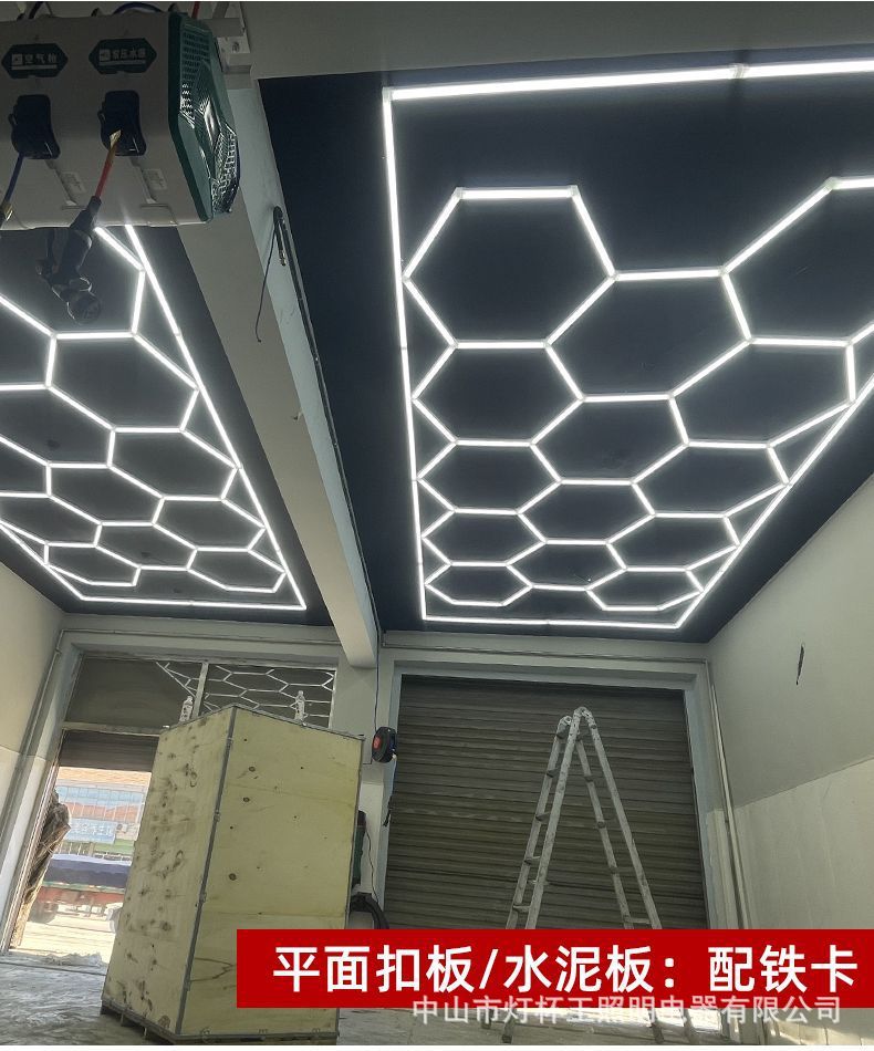 Garaje hexagonal transfronterizo automóvil de belleza estación de trabajo lámpara de oficina sala de exposiciones película de polvo impermeable lavado de automóviles lámpara de panal