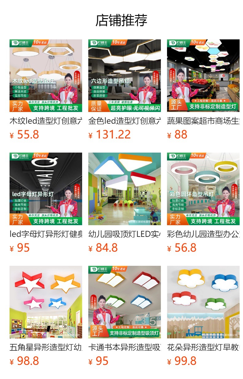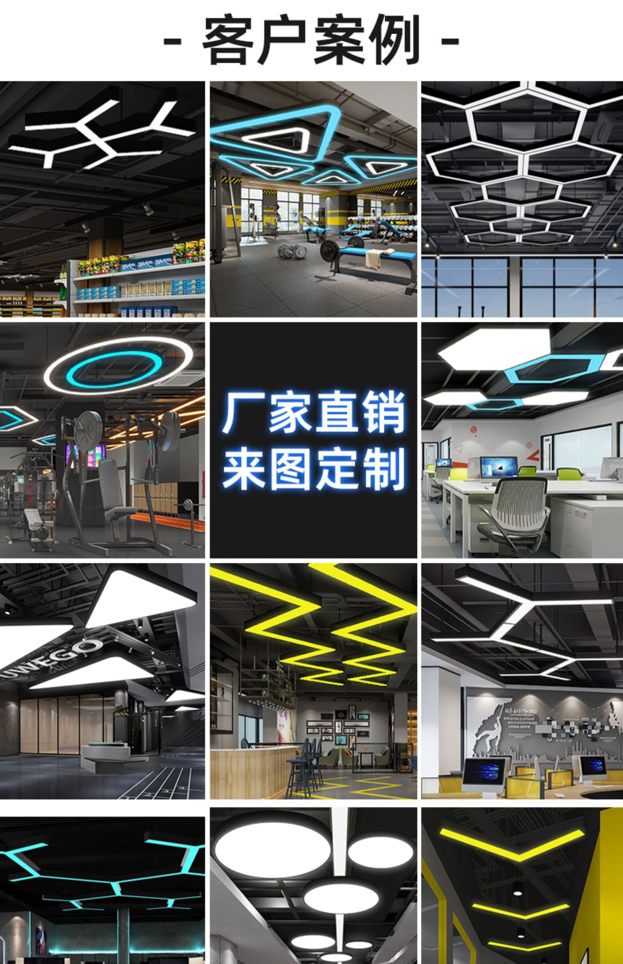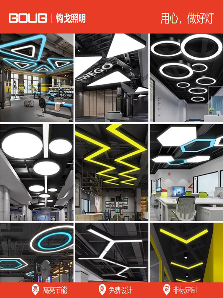 lámpara de oficina LED lámpara de modelado creativa hexagonal redonda cuadrada en forma de Y anillo de oficina lámpara de forma especial lámpara de cabina