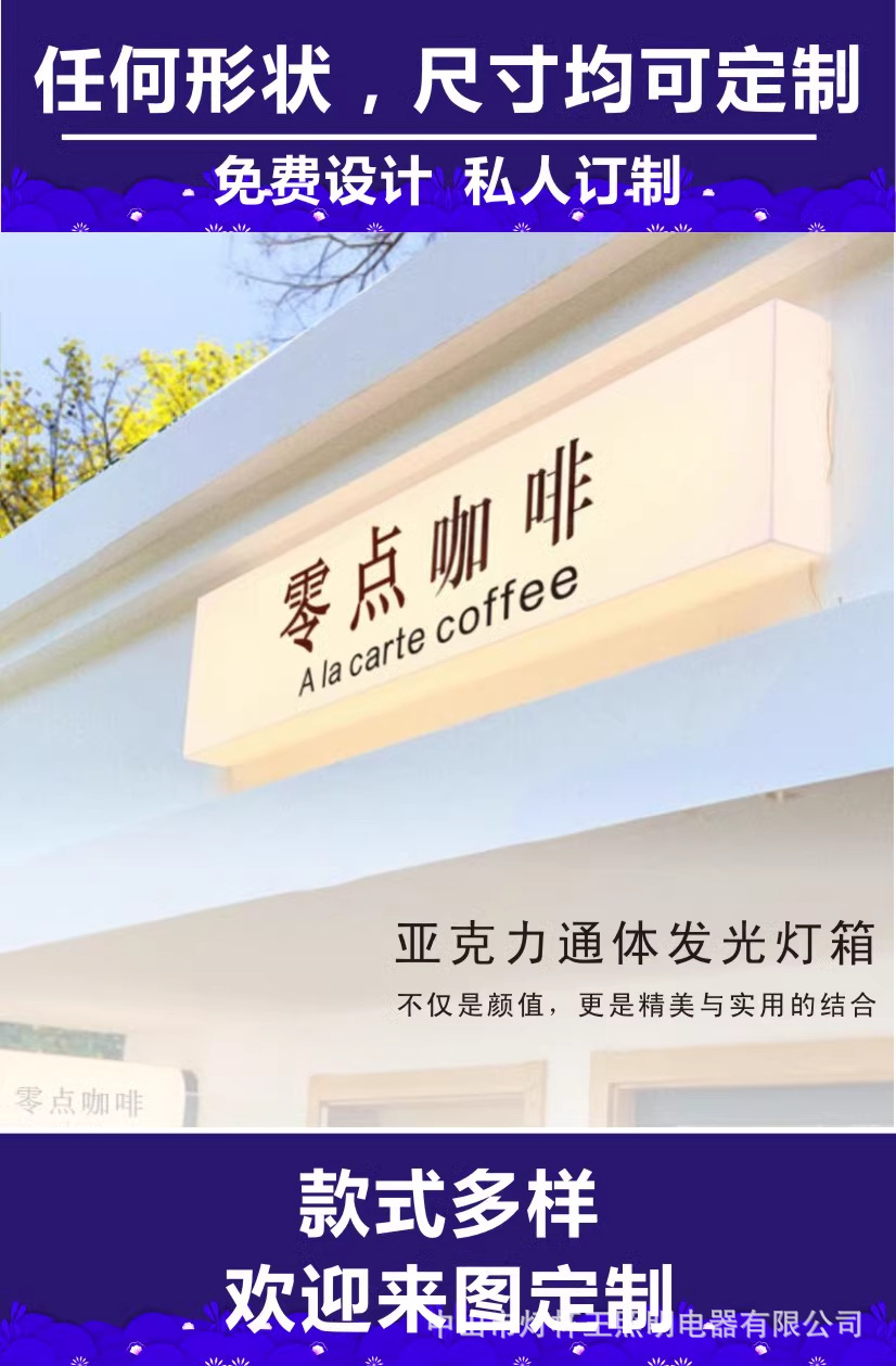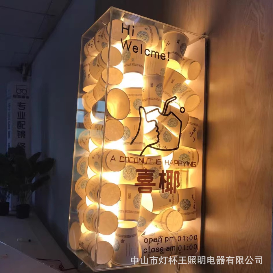 Caja de lámparas acrílicas cartel publicitario de cafeteria de luz creativa colgante de doble cara lámpara personalizada lámpara