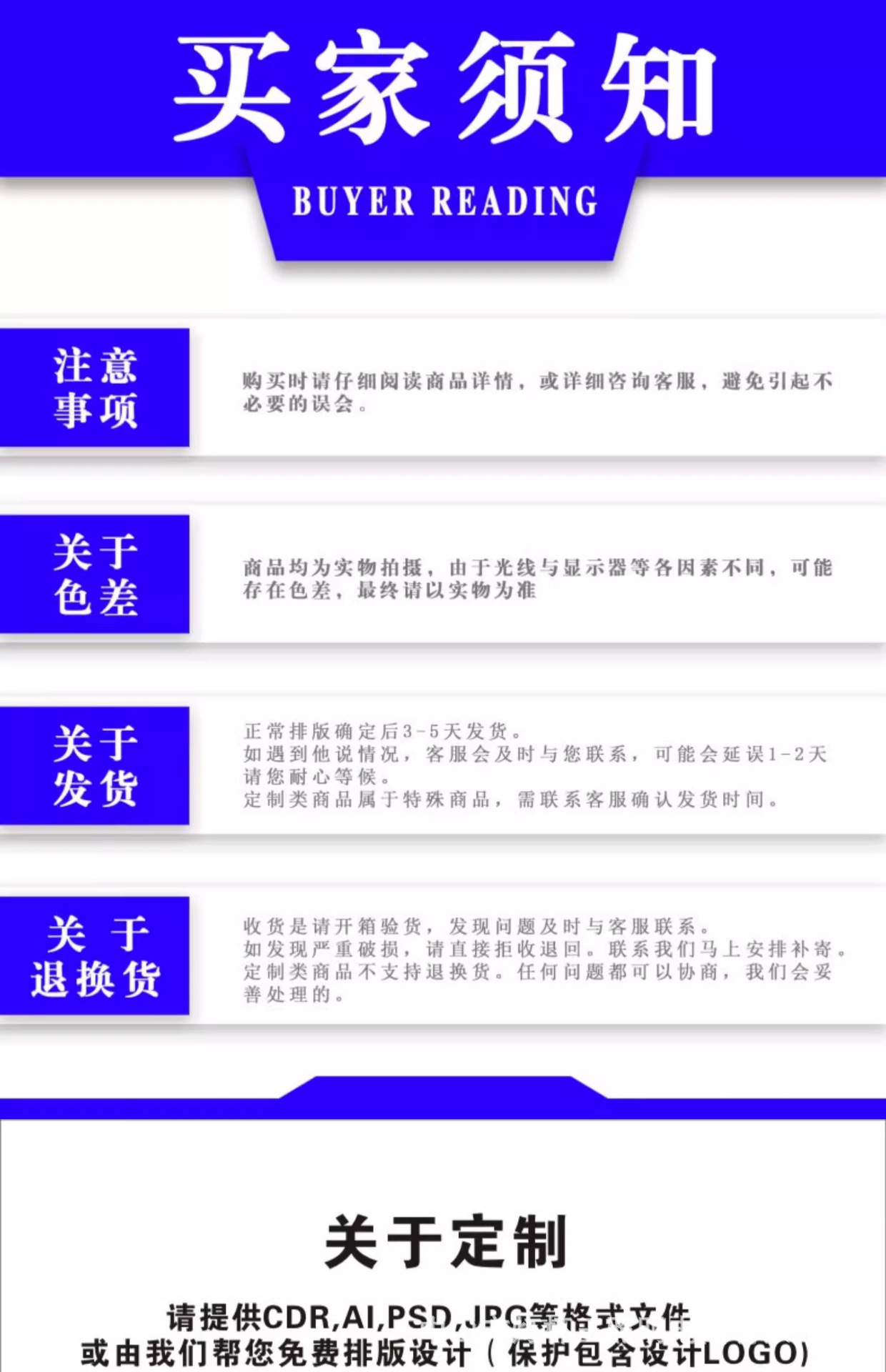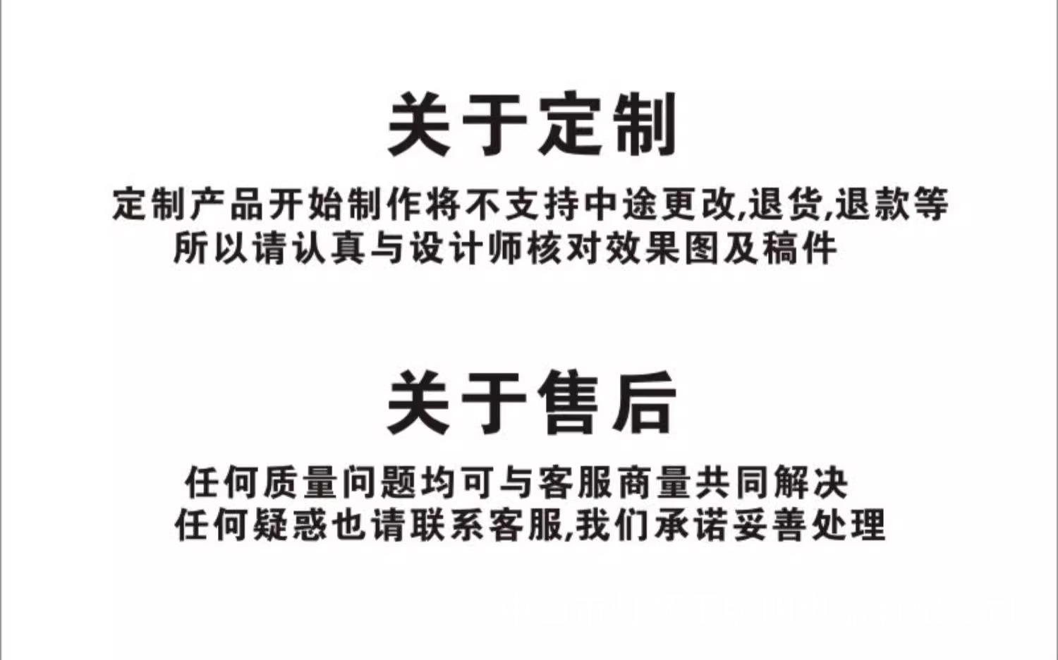 定制产品按您要求生产,无法二次销售。付款即视为接受定制服务,非质量问题不支持退换,请您下单前谨慎确认