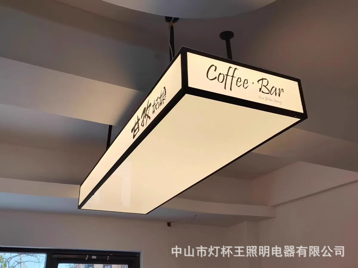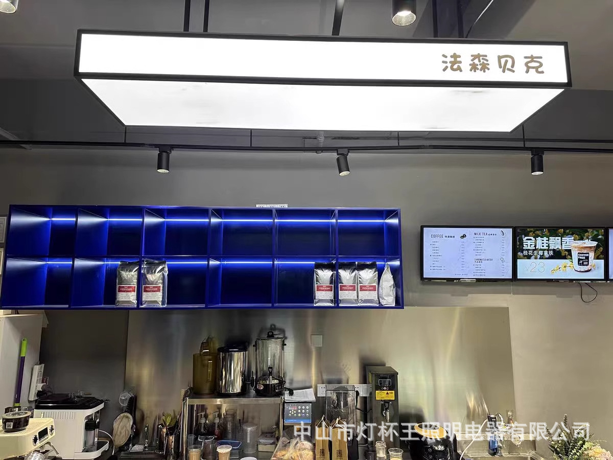 Acrílico barra colgante cajero caja de luz café leche tiendas de té leche