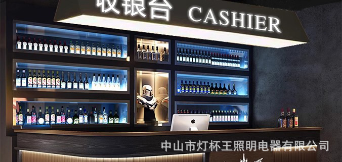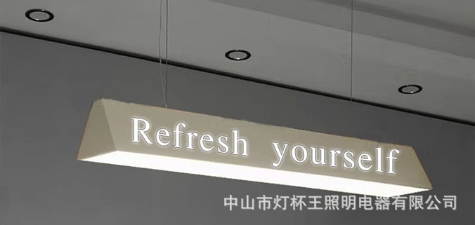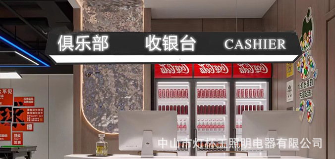 Cajero creativo Lámpara larga acrílica Restaurante Café Tienda de té con leche Lámpara de bar Lámpara de barra de luz de LOGO hueco