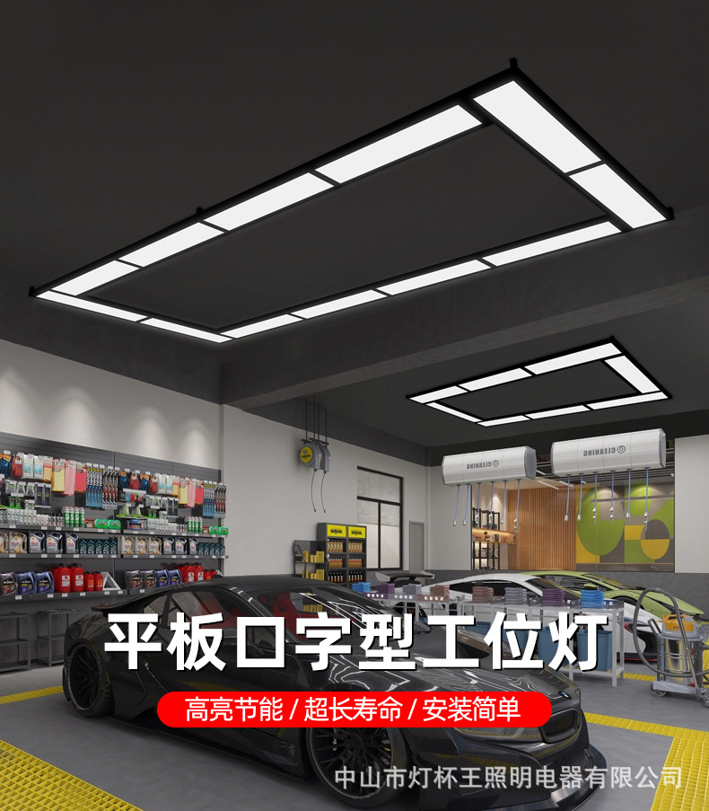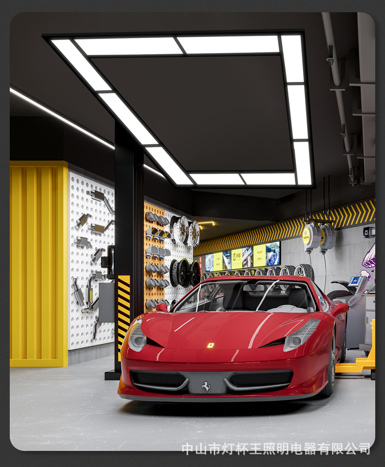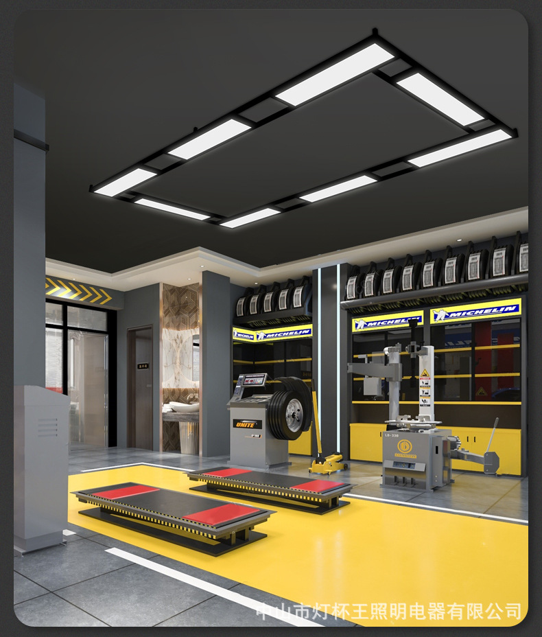 Lámpara de estación de inspección de mantenimiento de automóviles, lámpara de giro en forma de zigzag de boca especial, película, taller de belleza, sala de lavado de autos, lámpara de rejilla de palacio