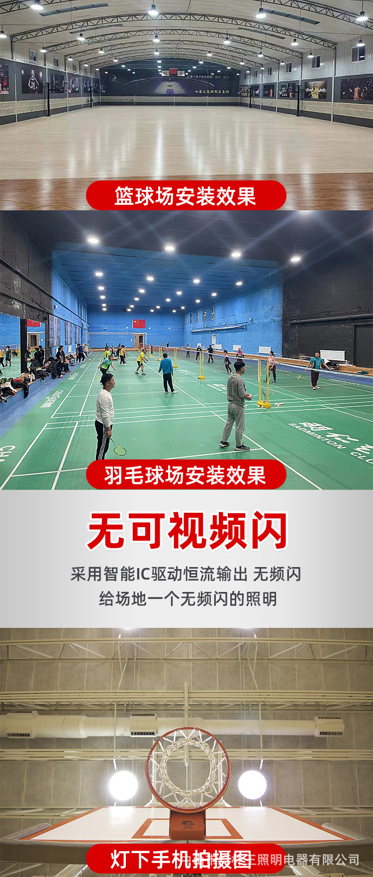 Iluminación LED para estadios interiores, luces especiales para salas de bádminton, canchas de baloncesto, candelabros para salas de tenis de mesa, antideslumbrante