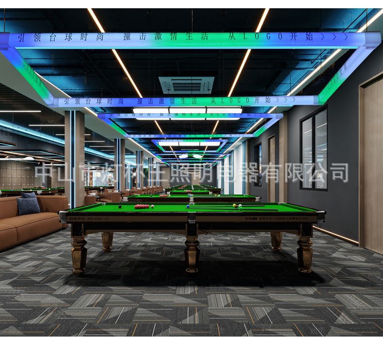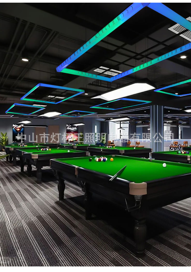 Sala de billar atmósfera lámpara acrílica centro comercial bar color neón monocromático empalmado lámparas decorativas rectangulares