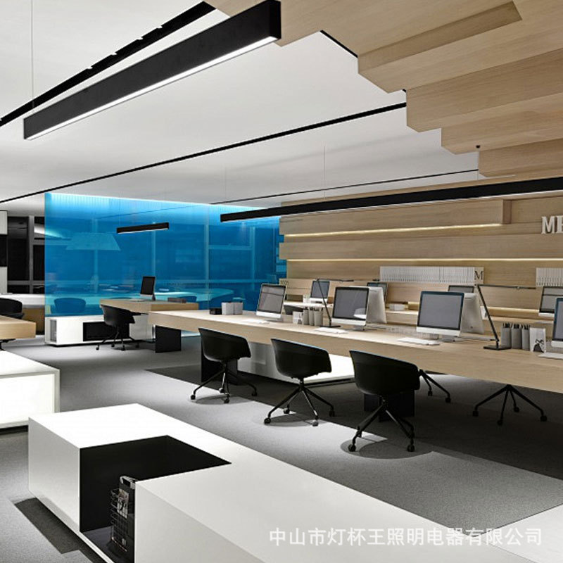 Aluminio sin costuras empalmado led lámpara de barra de oficina gimnasio supermercado forma de barra sin sombra lámpara de cables comerciales