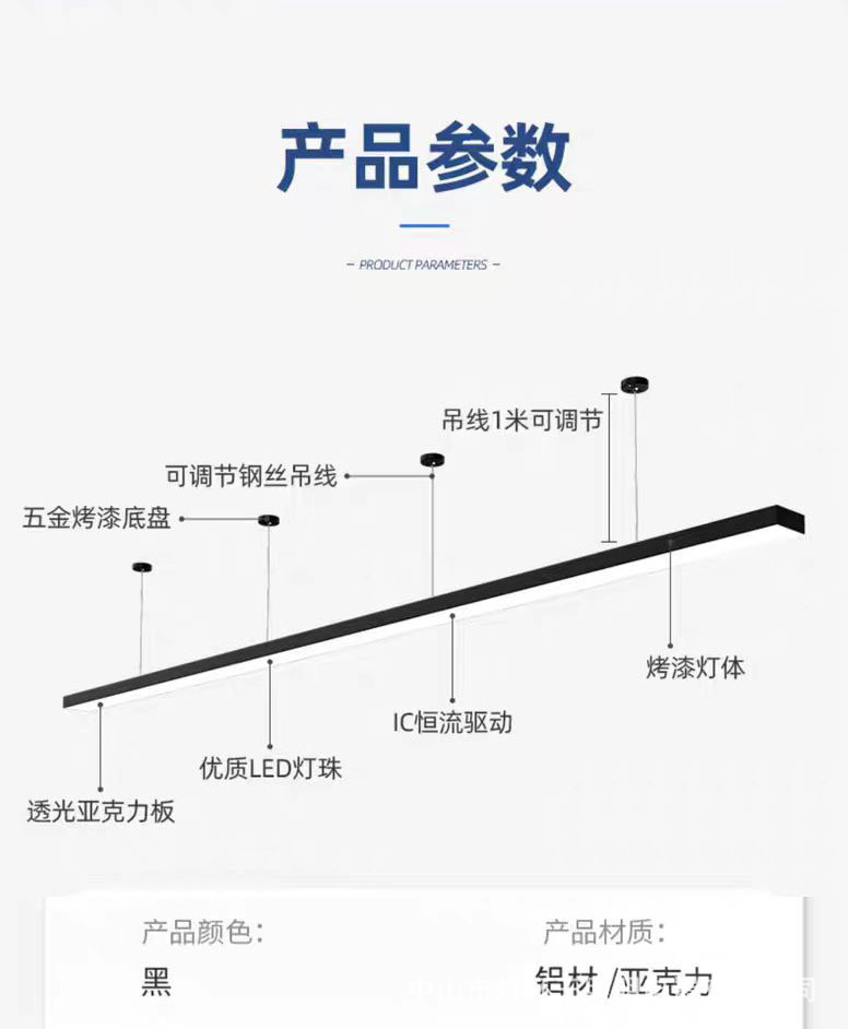 El aluminio empalma sin fisuras la cáscara negra (6000k) de luz blanca, el cable colgante por defecto