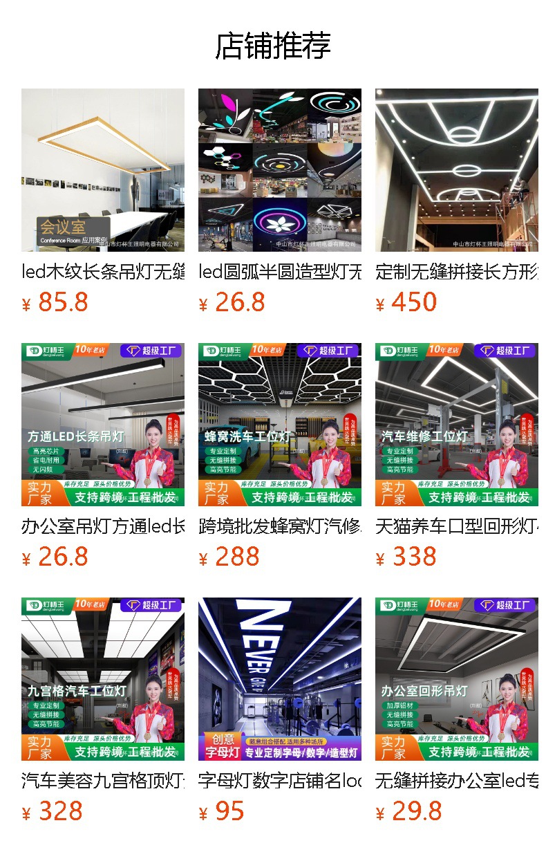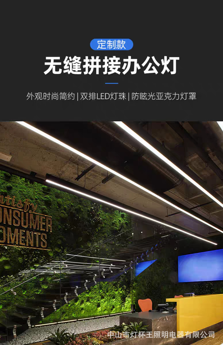 Aluminio sin costura empalmado led cuadrante especial lámpara de banda para sala de conferencias de banda de techo de oficina lámpara de oficina comercial