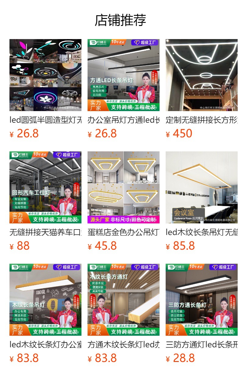 Lámpara larga de costura sin costura LED, estilo de gimnasio de oficina, centro comercial, lámpara de billar de supermercado, lámpara de ambiente de sala de billar