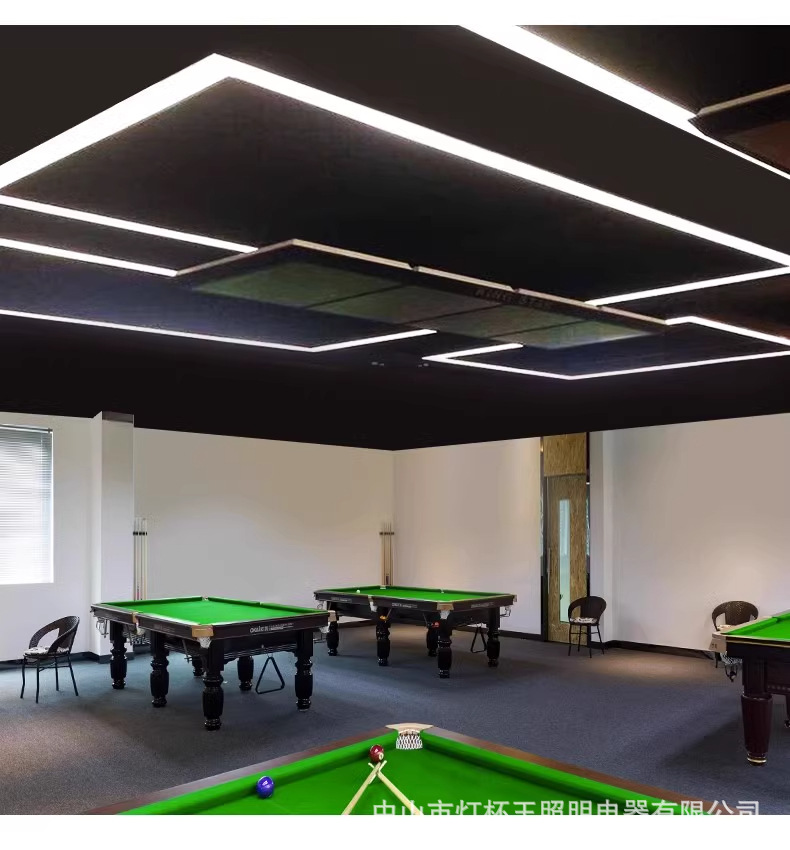 Sala de billar de ángulo redondeado iluminación de la atmósfera sala de billar de color hielo azul luz amarilla luz púrpura luz de la atmósfera