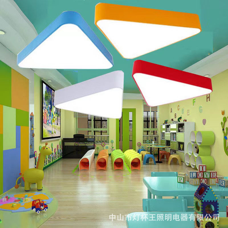 Jardín de infantes lámpara de techo LED triángulo sólido sala de aula institución de capacitación de educación temprana creativa color lámpara de forma especial
