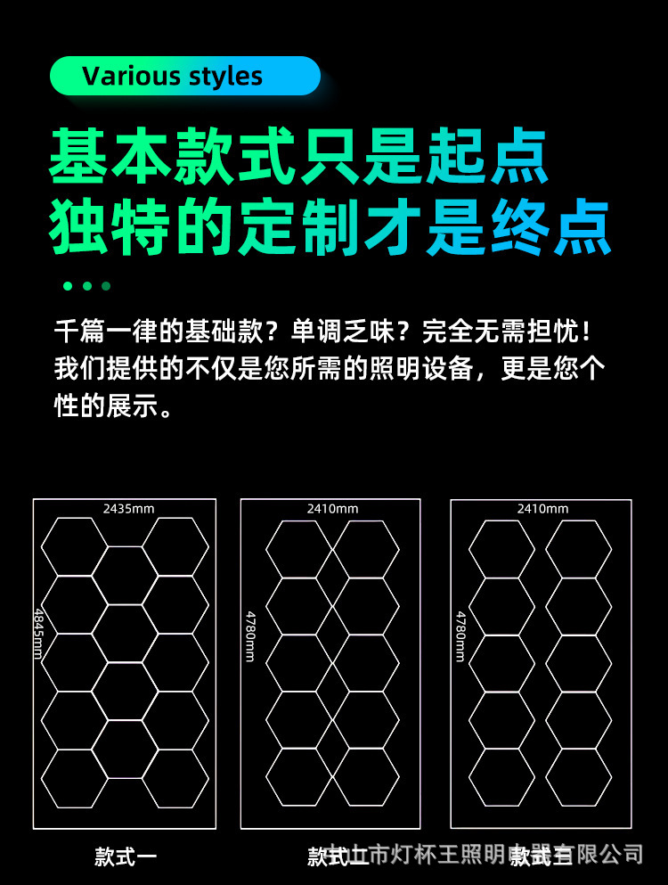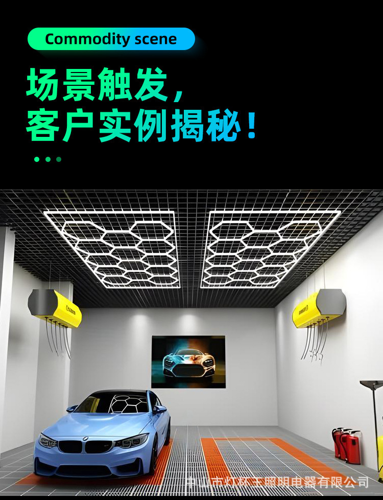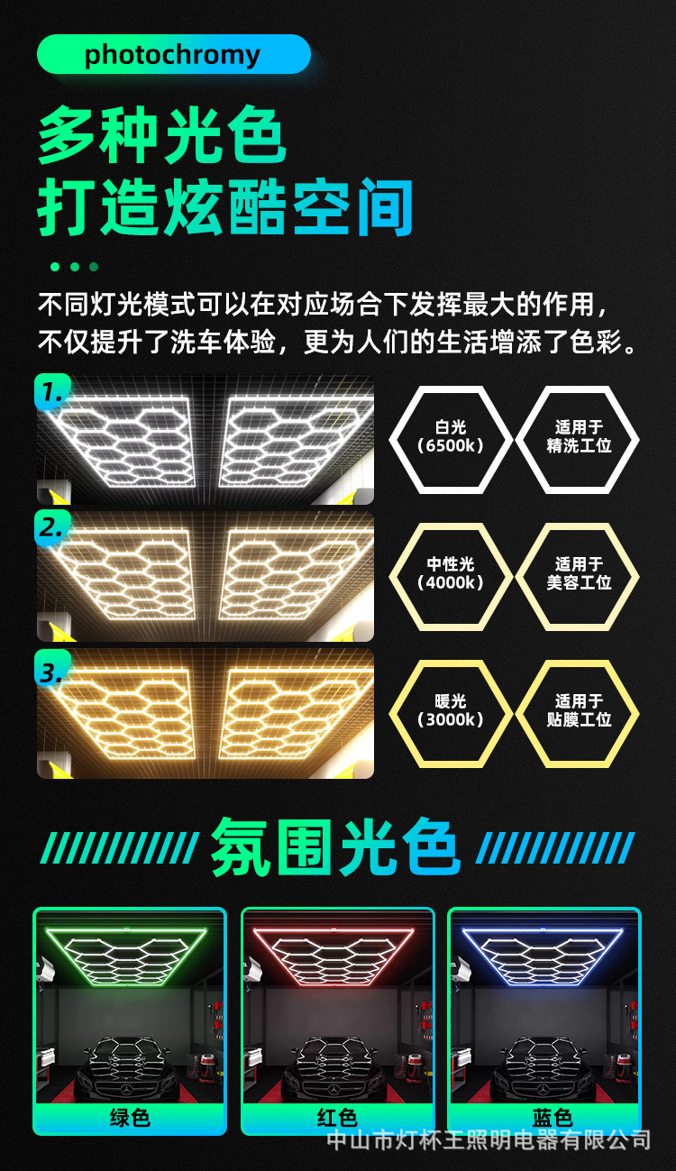 Lámpara de panal hexagonal transfronteriza 110V lámpara de garaje 220V lámpara de lavado de automóviles impermeable lámpara de estación de belleza de automóviles