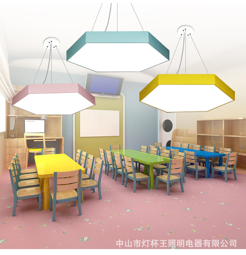Color jardín de infantes modelado oficina sala de aula candelabro triángulo redondo hexagonal en forma especial led candelabro modelado