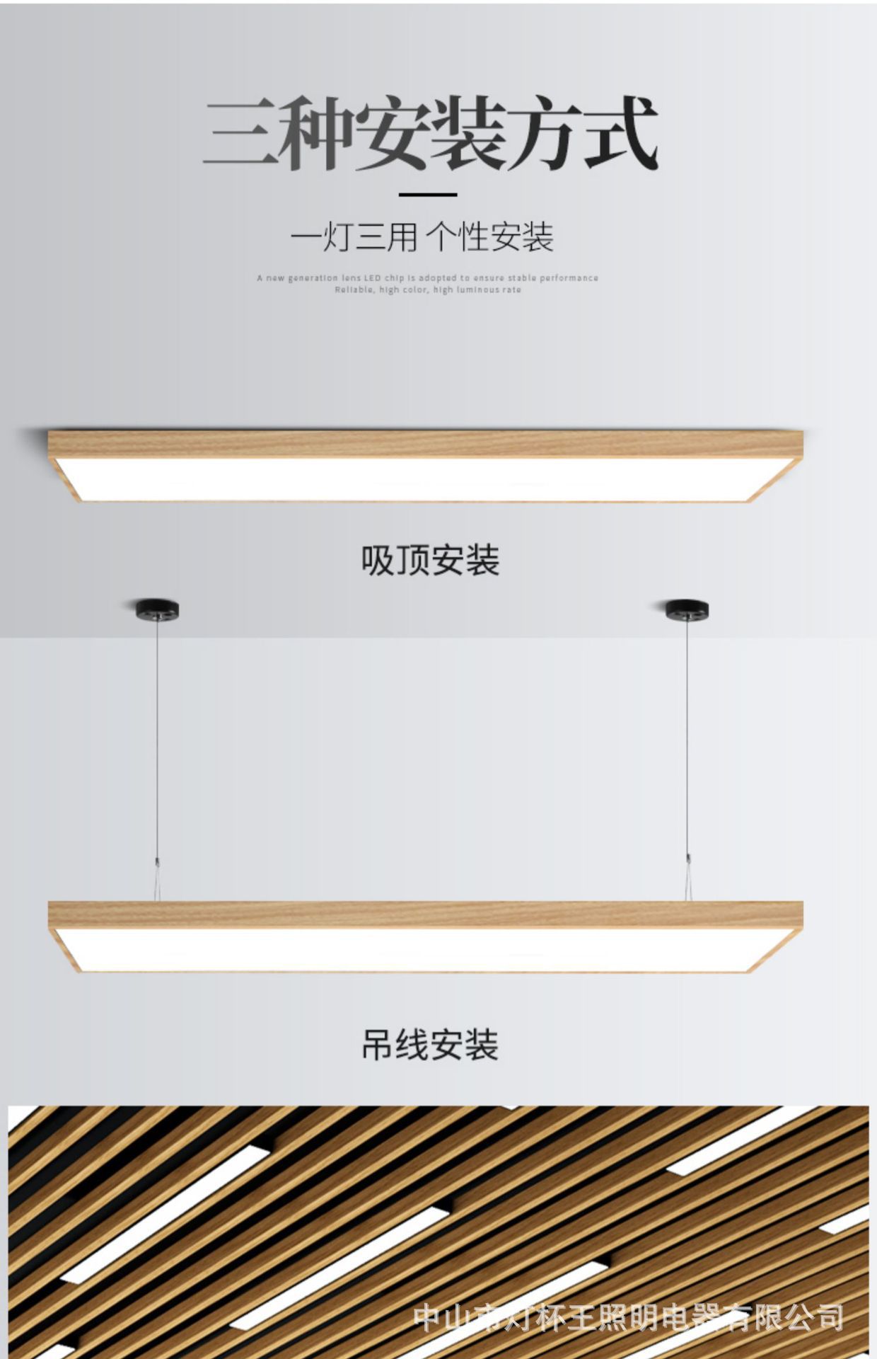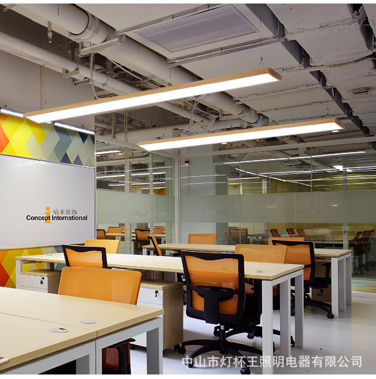Fang Tong madera larga lámpara de lámpara de oficina led gimnasio jardín de infantes supermercado lámpara de iluminación de cable