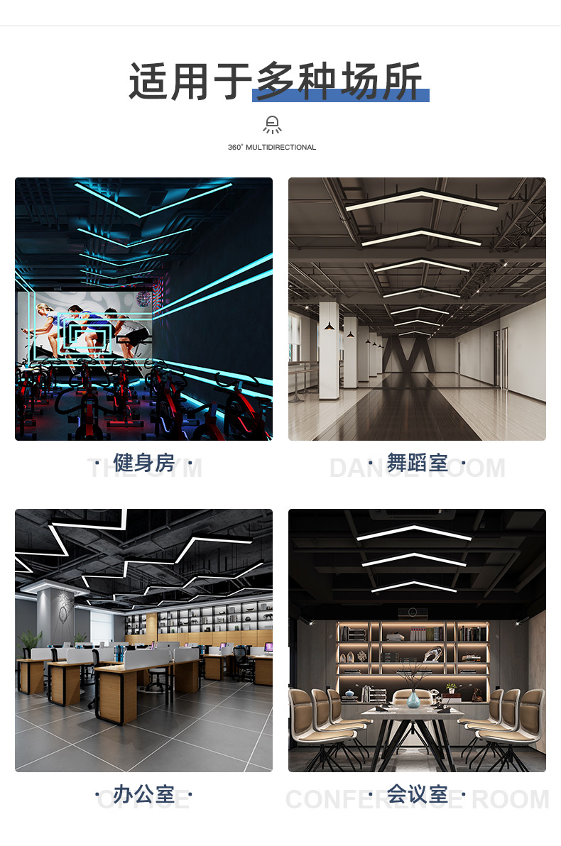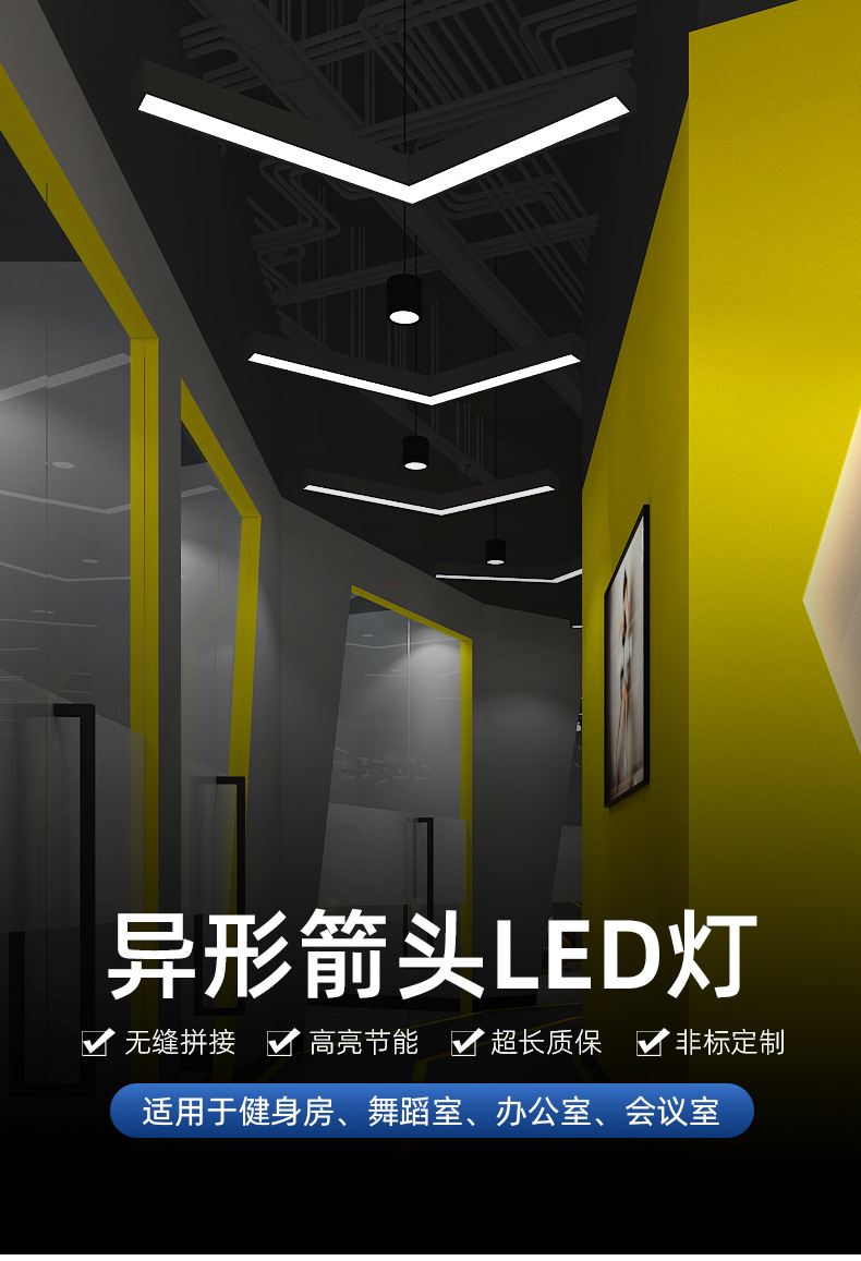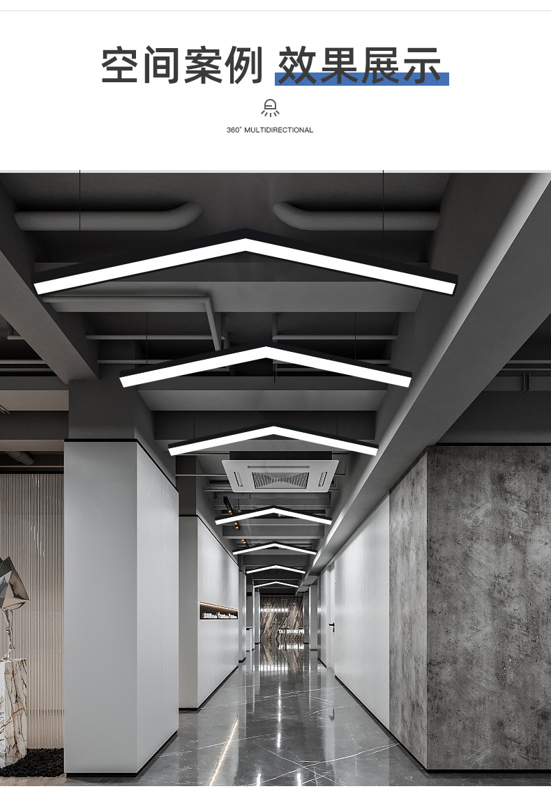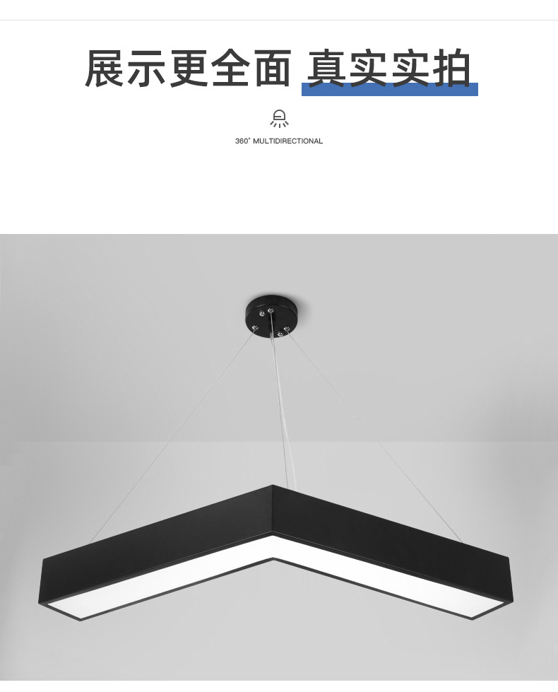 Oficina gimnasio lámpara de modelado LED lámpara de techo en forma de V Internet cafetería centro comercial pasillo estilo industrial lámpara de techo