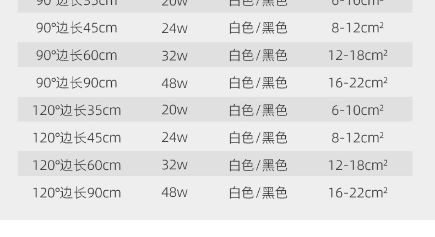 Ángulo 90 °-negro-luz blanca (longitud de lado 90CM)65W