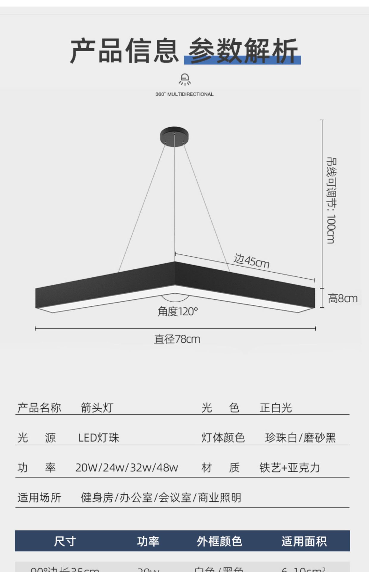 Ángulo 120 °-negro-luz blanca (longitud de lado 90CM)65W