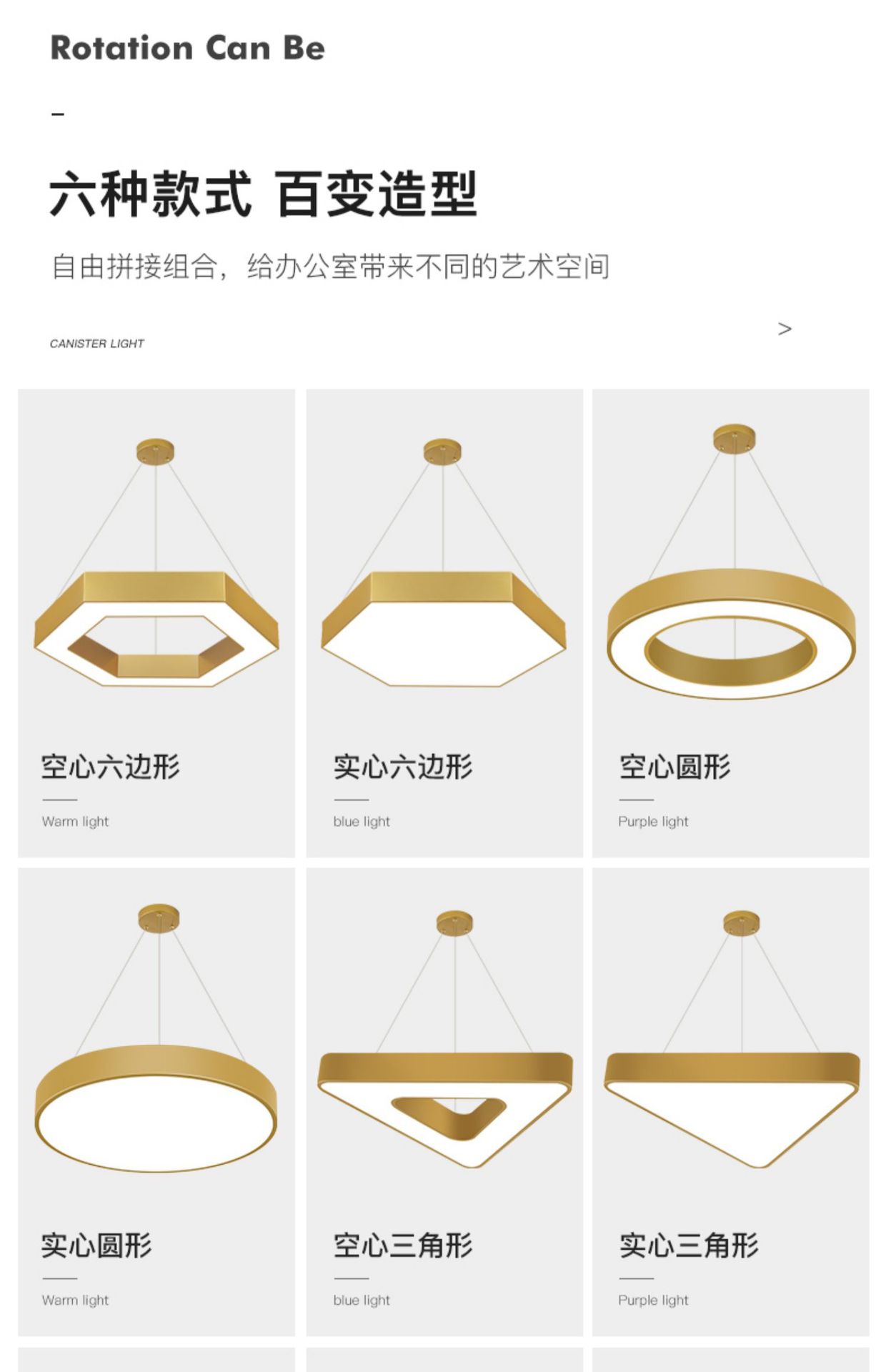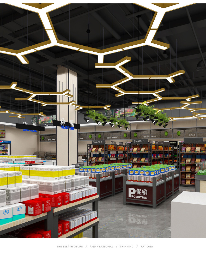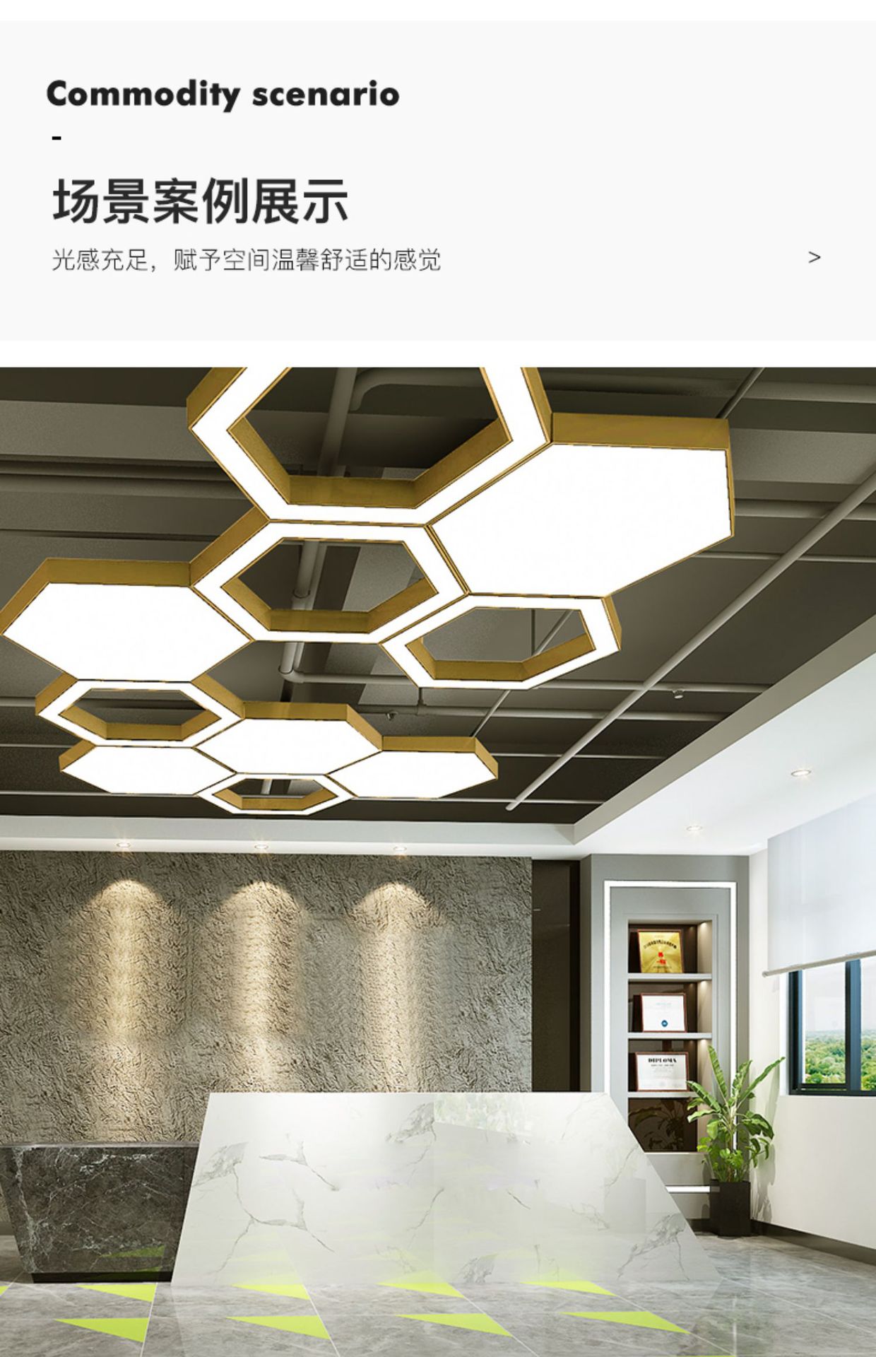Oro LED lámpara de modelado creativo hexagonal Oficina supermercado restaurante gimnasio pasillo industrial en forma