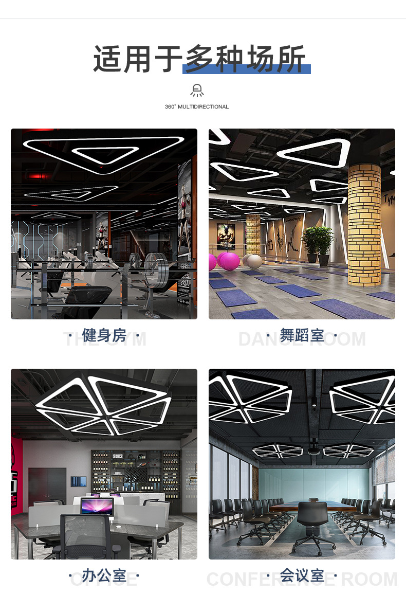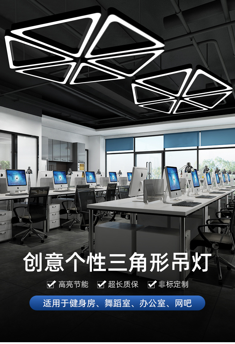 Gimnasio Internet café lámpara de modelado creativo triángulo LED lámpara centro comercial Oficina industrial lámpara de viento lámparas de ingeniería
