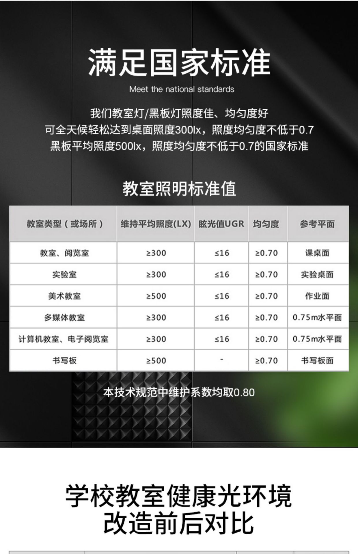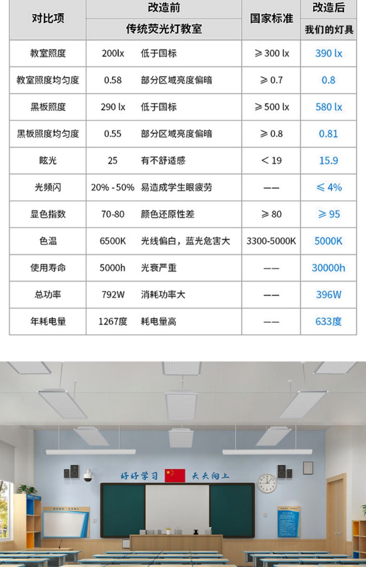 Lámpara LED para aulas, antideslumbrante, para pizarras, con soporte, protección ocular para estudiantes, iluminación para oficinas, escuelas, instituciones de formación, uso comercial