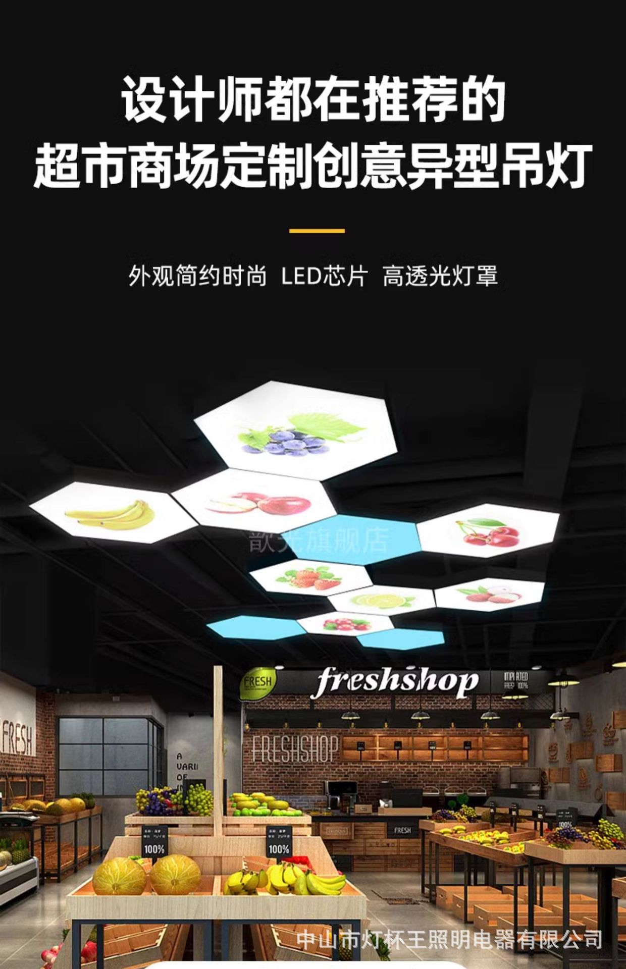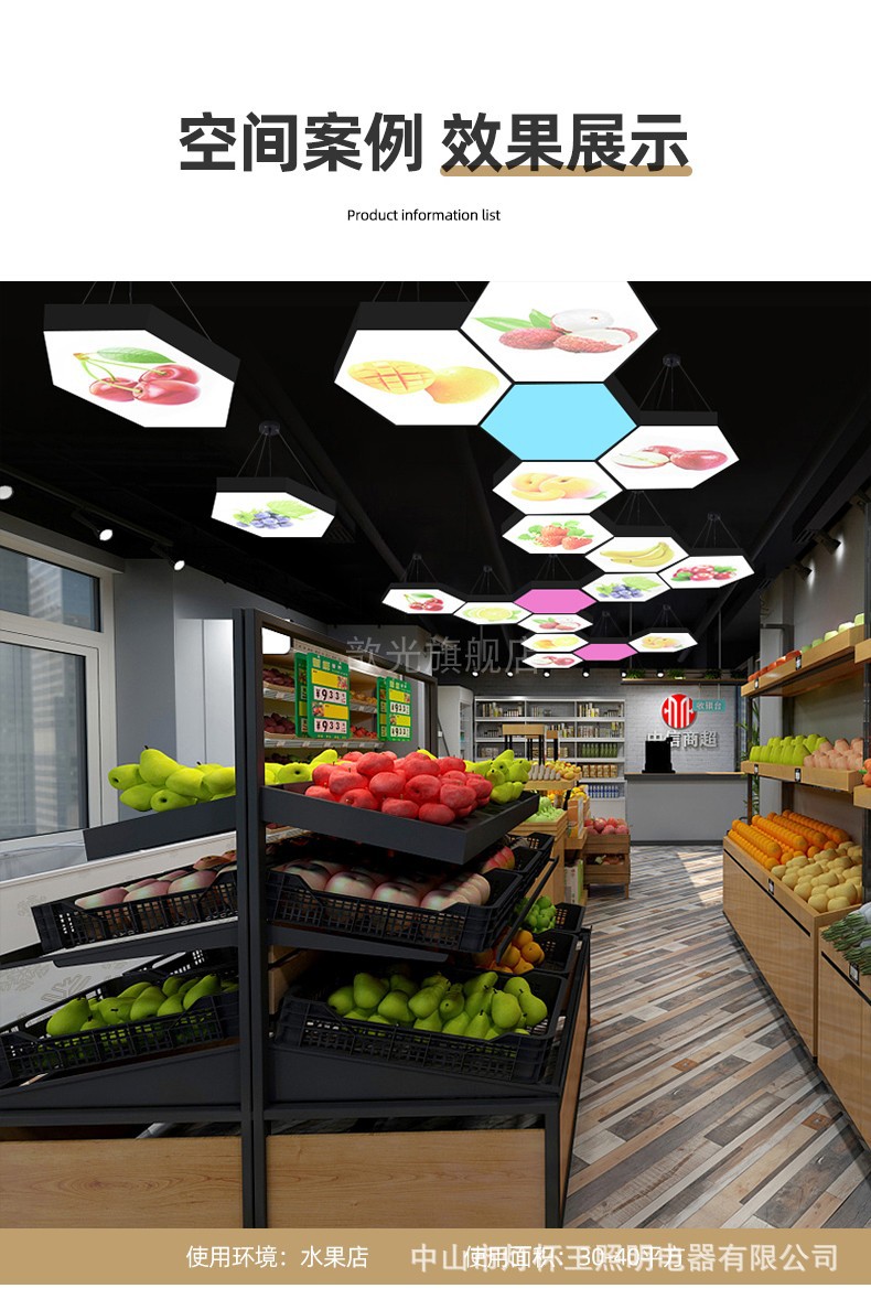 Vegetales y frutas patrón supermercado luces especiales frescas tienda de frutas decoración luces de forma especial tienda por departamentos luces súper industriales