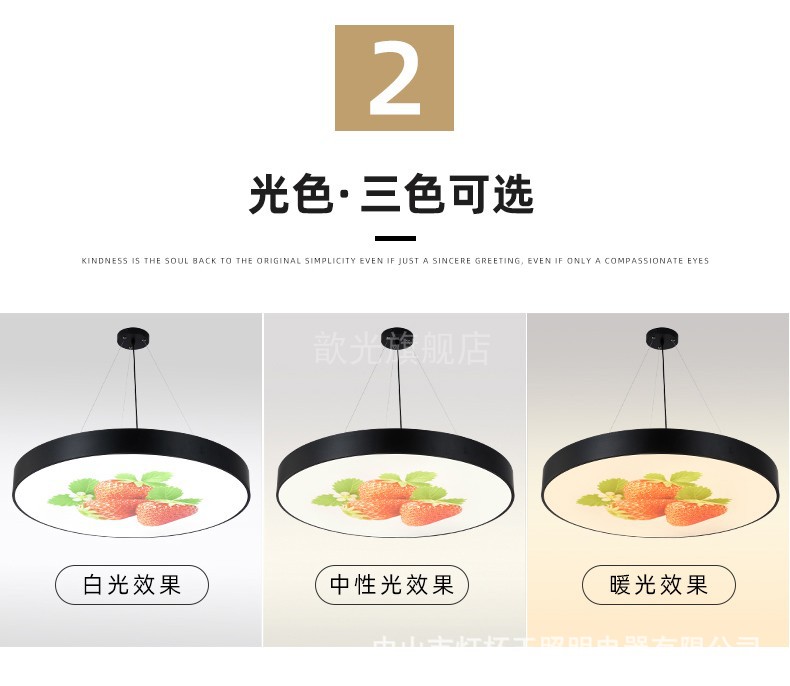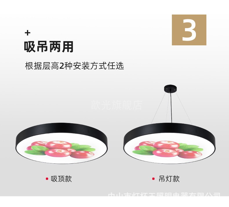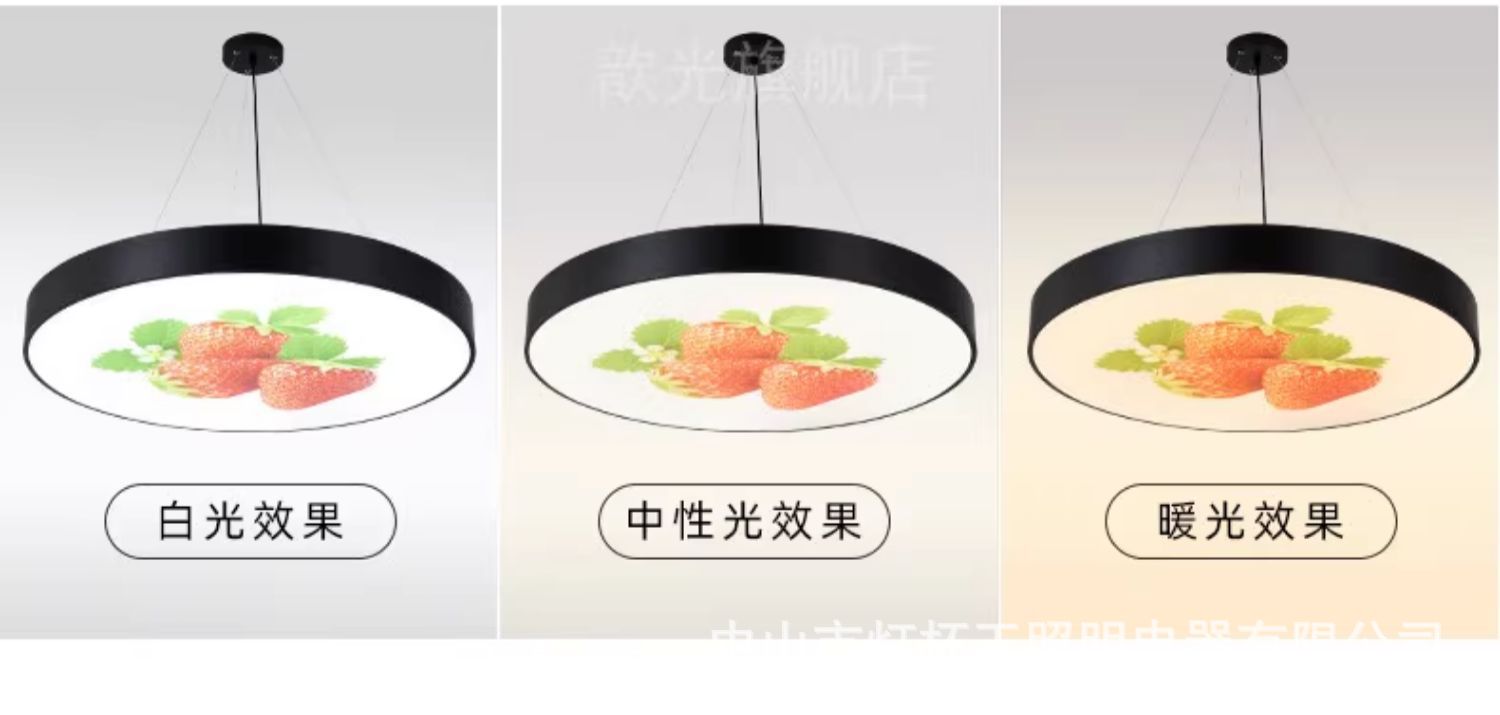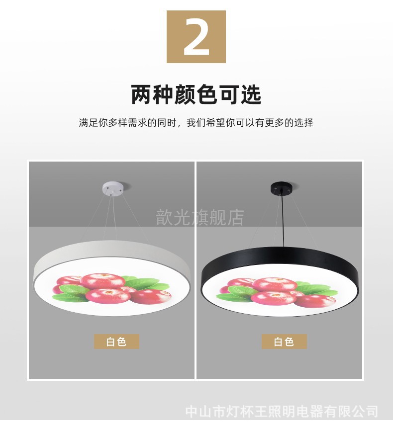 Diámetro de la luz blanca 60 * 5cm marco negro patrón de fruta redonda sólida
