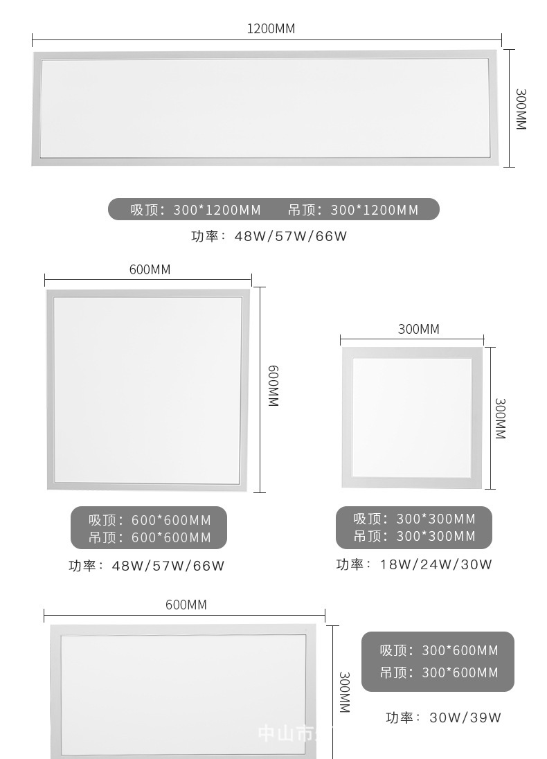 | Potencia | 300x300 aluminio / embalaje claro 28 vatios, 300x600 aluminio / embalaje claro 35 vatios, 300x600 aluminio / embalaje claro 45 vatios, 300x600 aluminio / embalaje claro 55 vatios, 600x600 aluminio / embalaje claro 35 vatios, 600x600 aluminio / embalaje claro 45 vatios, 600x600 aluminio / embalaje claro 55 vatios, 600x600 aluminio / embalaje claro 65 vatios, 600x600 aluminio / embalaje claro 85 vatios, 300x1200 aluminio / embalaje claro 48 vatios, 300x1200 aluminio / embalaje claro 68 vatios, 300x1200 aluminio / embalaje claro 75 vatios, 600x1200 aluminio/ modelo brillante 98 vatios, 600x1200 aluminio / modelo brillante 110 vatios, 600x1200 aluminio / modelo brillante 120 vatios, 300x900 - modelo brillante 48w, 300x900 - modelo brillante 68w |