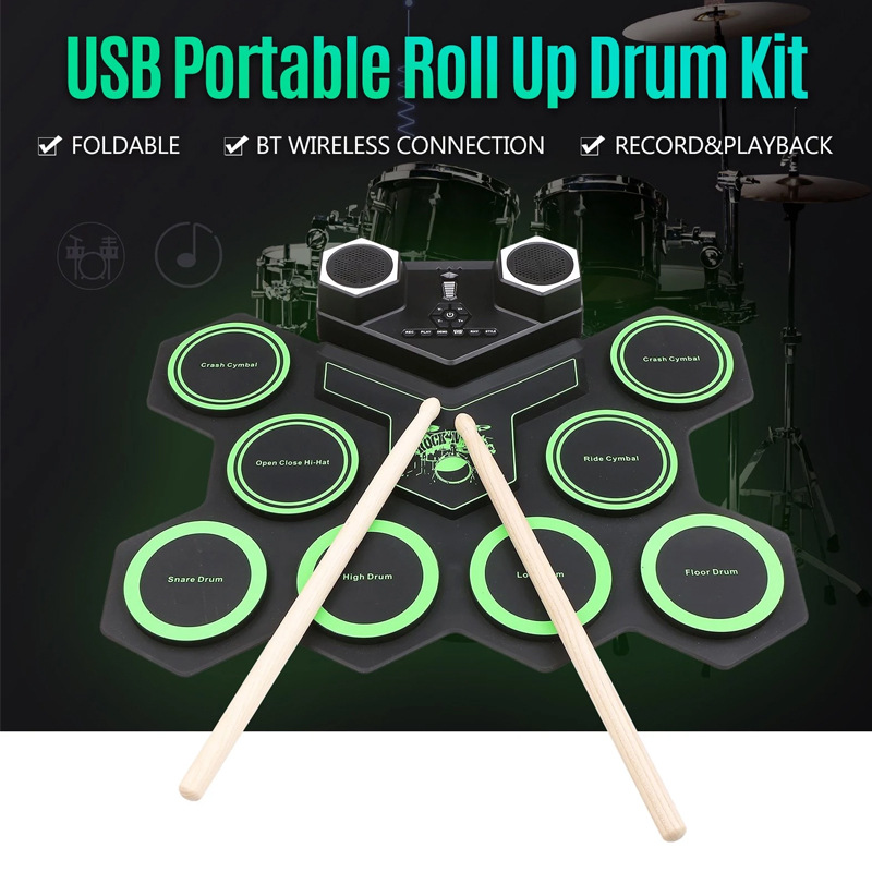 Manual roll tambor electrónico instrumento de percusión portátil de silicona mano roll estante tambor jazz tambor USB tambor electrónico al por mayor transfronterizo