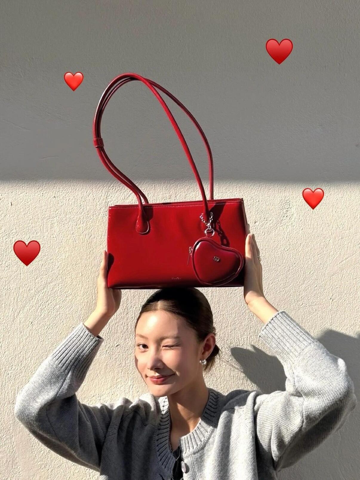 2025 bolsas de nicho coreanas de diseño de mango largo de hombro único bolsas de brazo de gran capacidad para auriculares de amor bolsas para mujeres