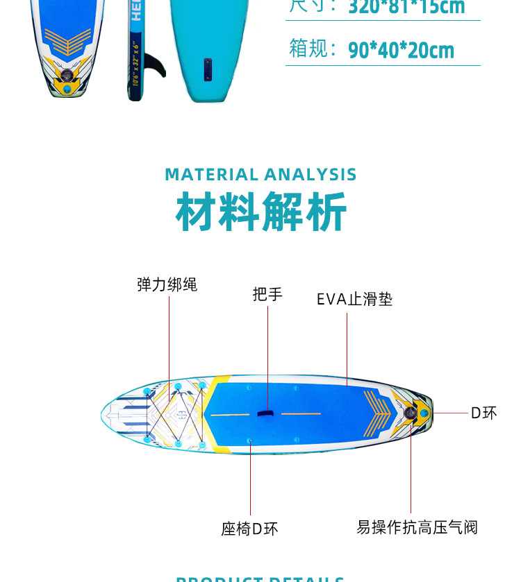 Tablero de paddle de surf inflable al aire libre Tablero de paddle de surf acuático SUP Tablero de paddle de pesca casual Material de trefilado de PVC grueso