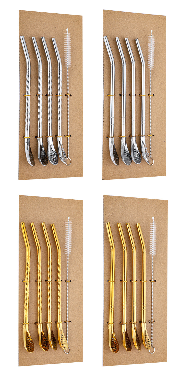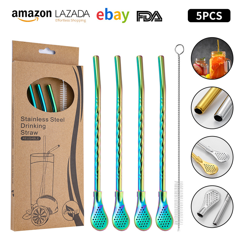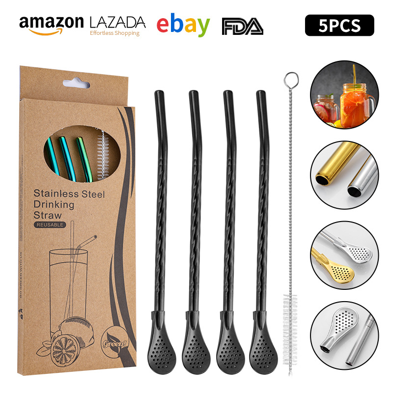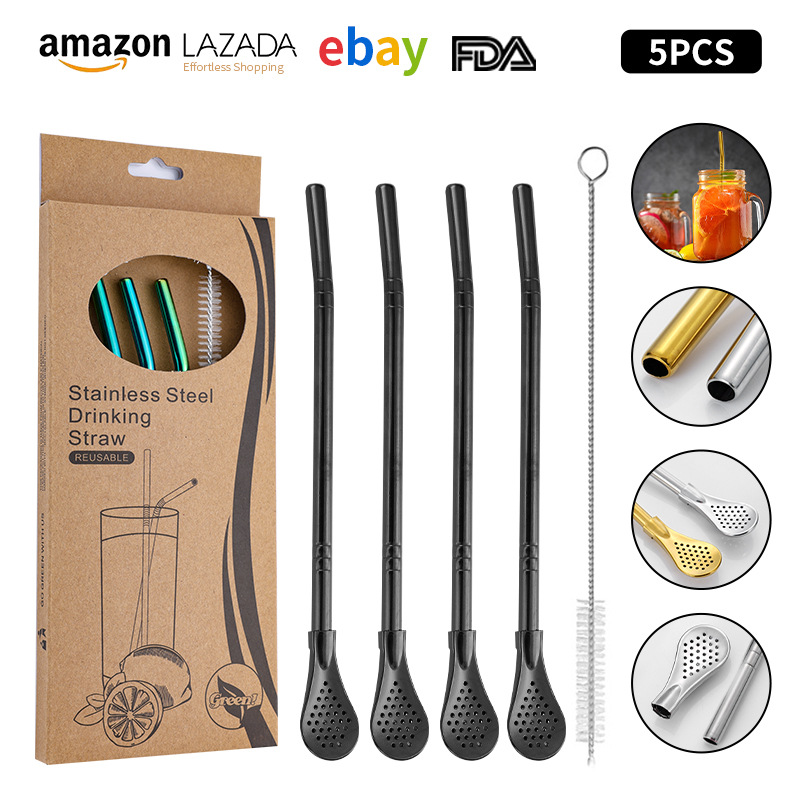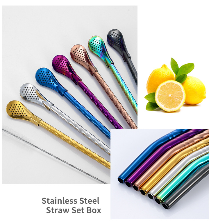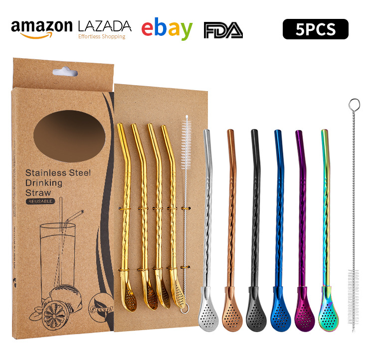 Juego de cuchara de pajita de acero inoxidable 304 transfronterizo creativo de té de yerba, filtro de jugo de yerba, té con leche, cuchara para mezclar café