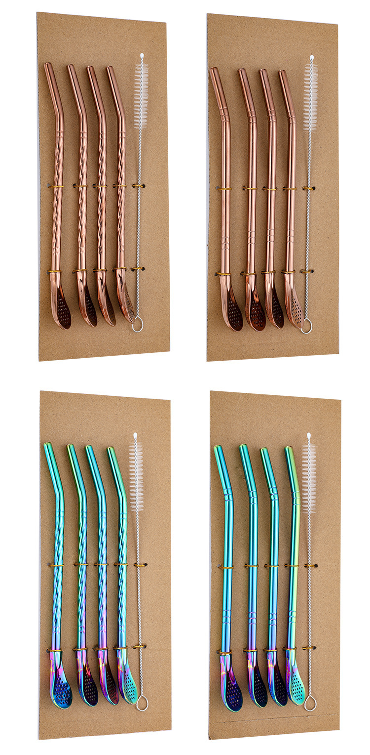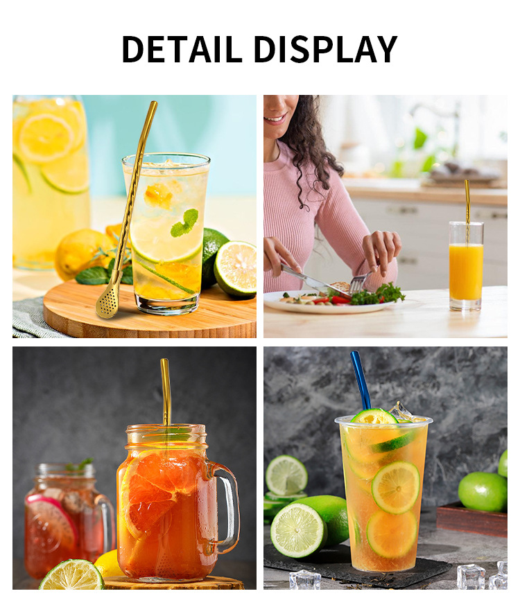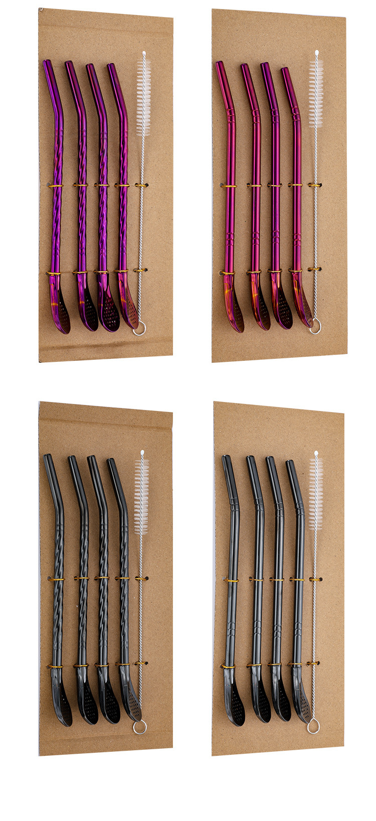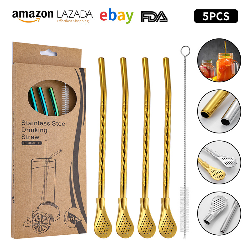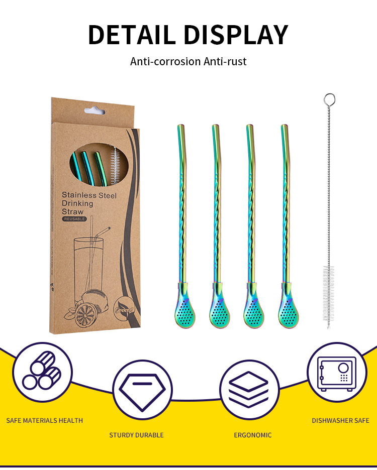 Juego de cuchara de pajita de acero inoxidable 304 transfronterizo creativo de té de yerba, filtro de jugo de yerba, té con leche, cuchara para mezclar café