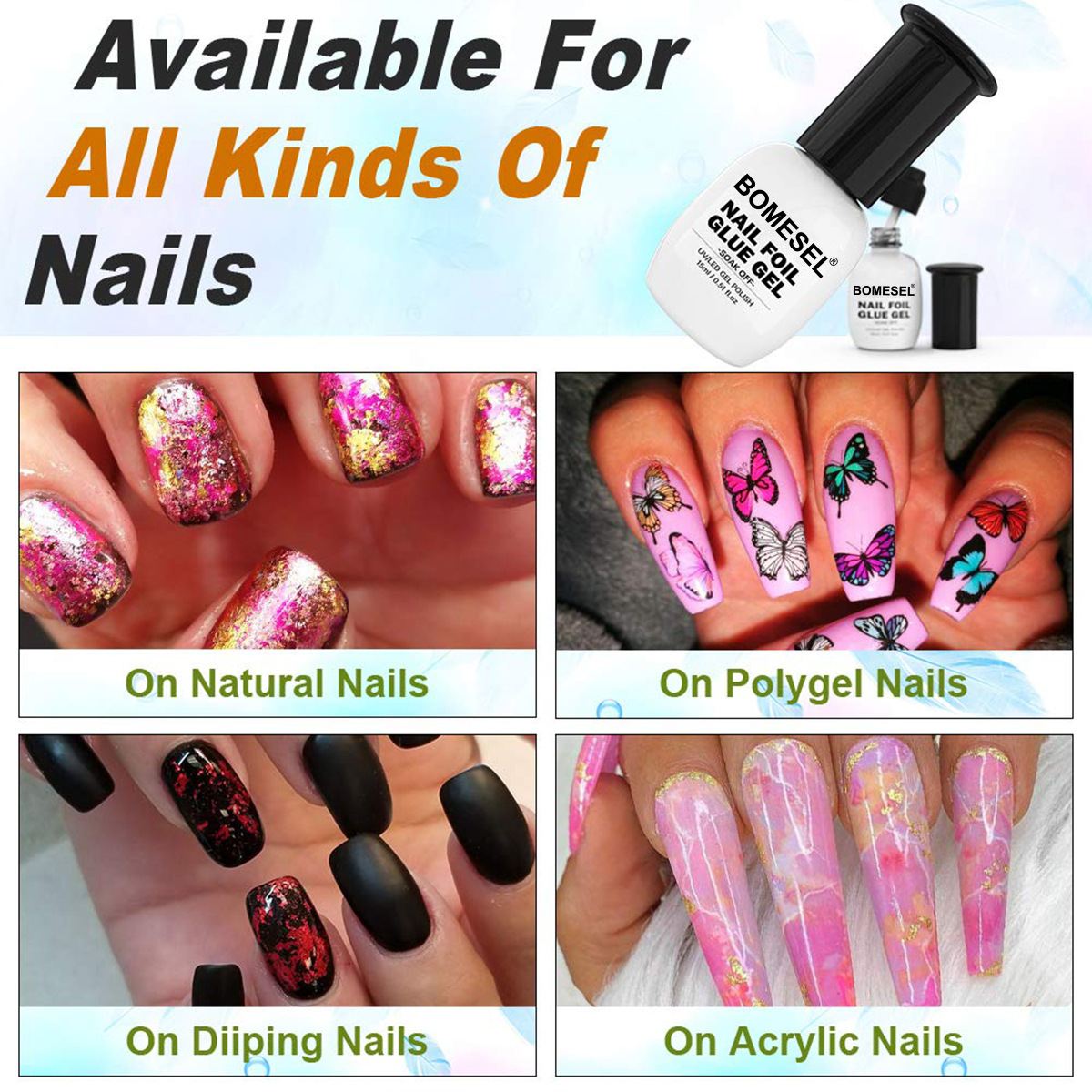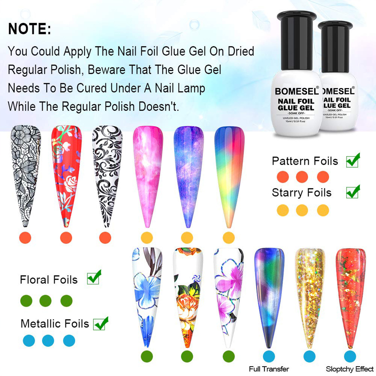 Adhesivo de transferencia UV para uñas de goma fuerte adhesión de transferencia completa de uñas DIY para pegatinas de arte de láminas de uñas